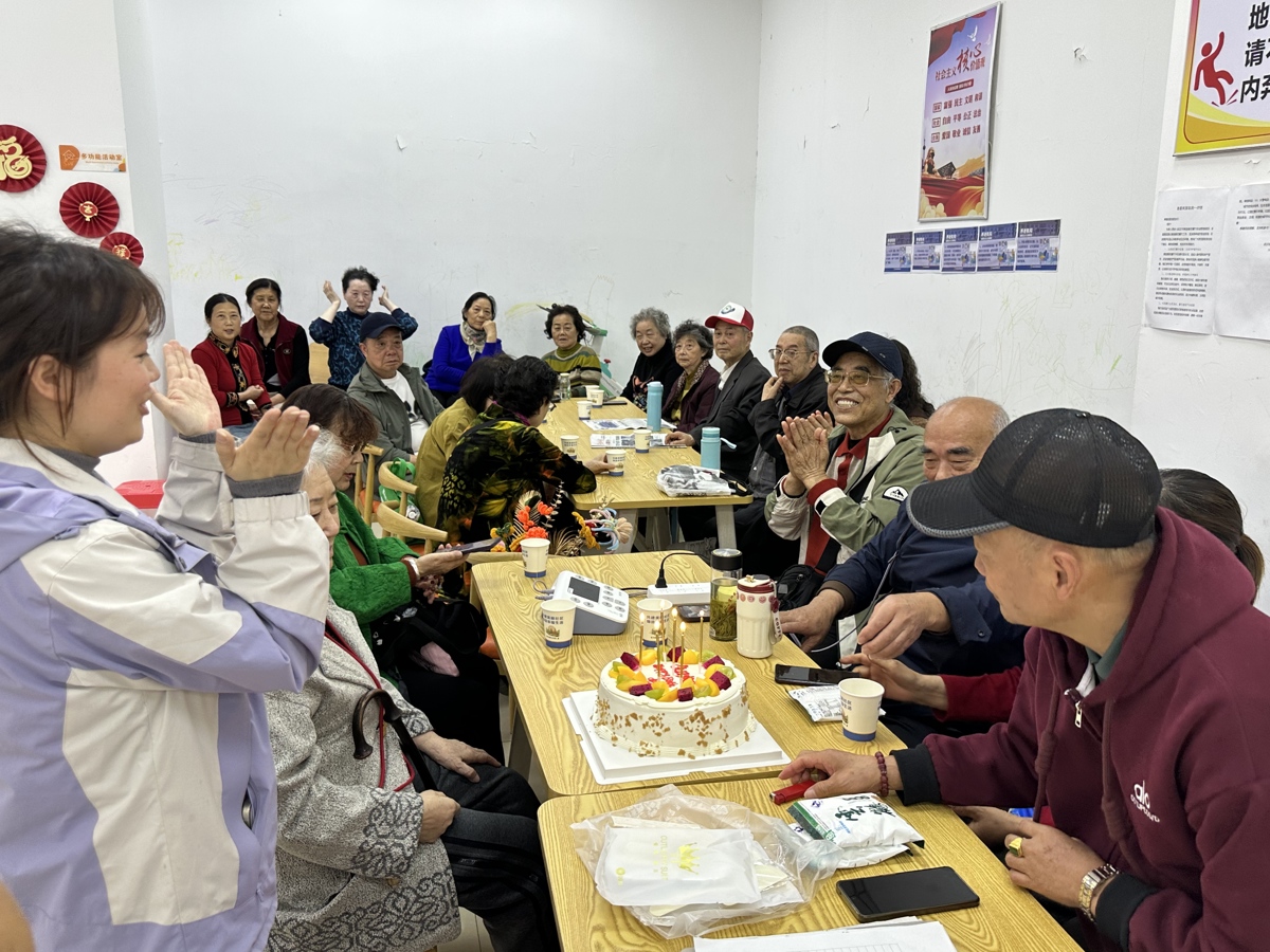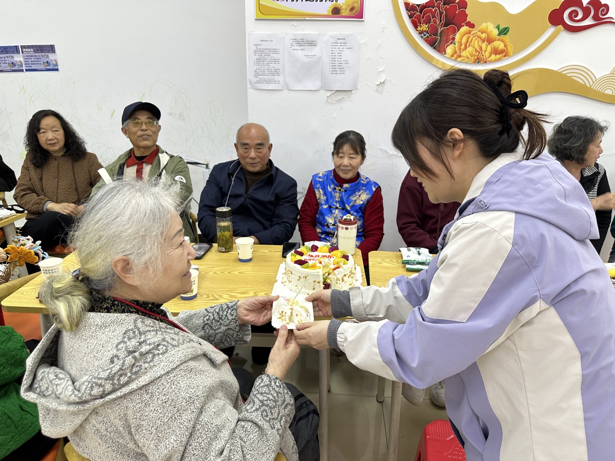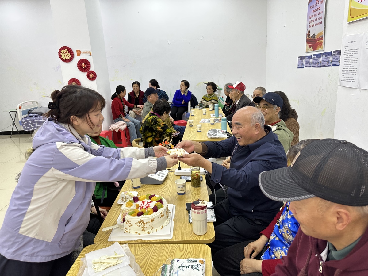 最令人期待的环节是分享生日蛋糕。在温馨的《生日快乐》歌声中,社工推出精美的生日蛋糕,为老人们戴上生日帽。大家围坐在一起,许下心愿,吹灭蜡烛,共同分享这份甜蜜。75岁的张奶奶笑着说:“孩子们平时工作忙,今天社区给我们过集体生日,比家里还热闹,心里又甜又暖。”