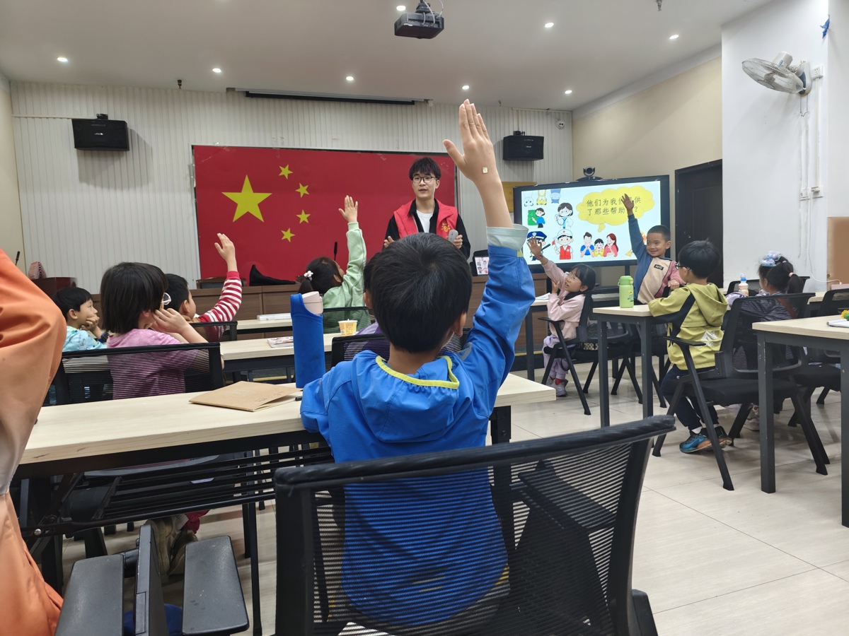 近日,湖北大学外国语学院志愿者团队走进武昌放鹰台社区,参加武昌区水果湖街道“周末伴・亲子共育”项目,开展“用英语讲社区故事”公益英语系列课程,让孩子们在趣味互动中感受语言魅力,也为社区家庭教育注入青春力量。