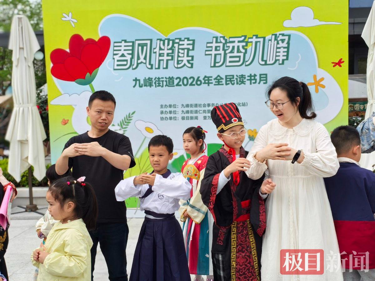 “春风得意马蹄疾,一日看尽长安花。”4月12日,伴随着孩童清脆的诵诗声,武汉东湖高新区九峰街道2026年全民读书月系列活动暨仁尚里春日派对在壹为邻招商中心户外广场(豹子溪公园)举行,数十组亲子家庭赴约,读书赛诗,以书换蔬,学习揖礼,汉服走秀……在浓浓书香中体验一场兼具趣味与温度的阅读盛宴。