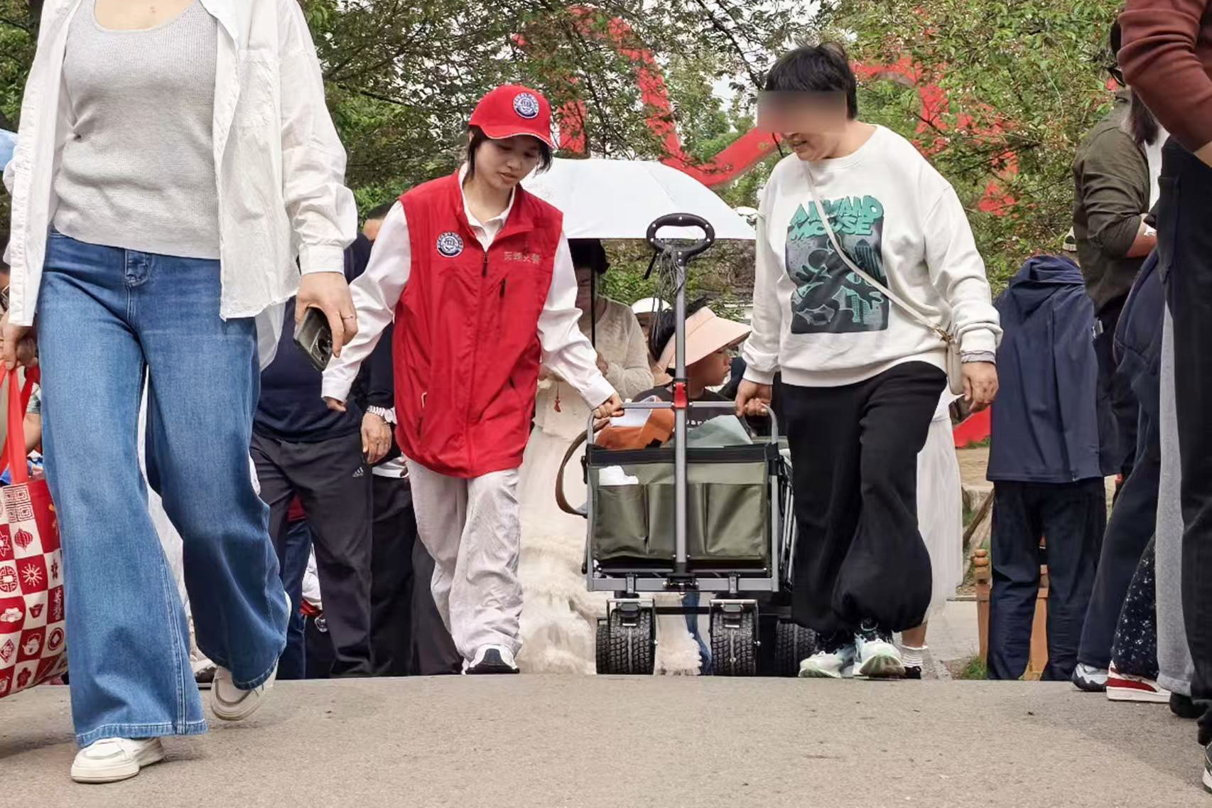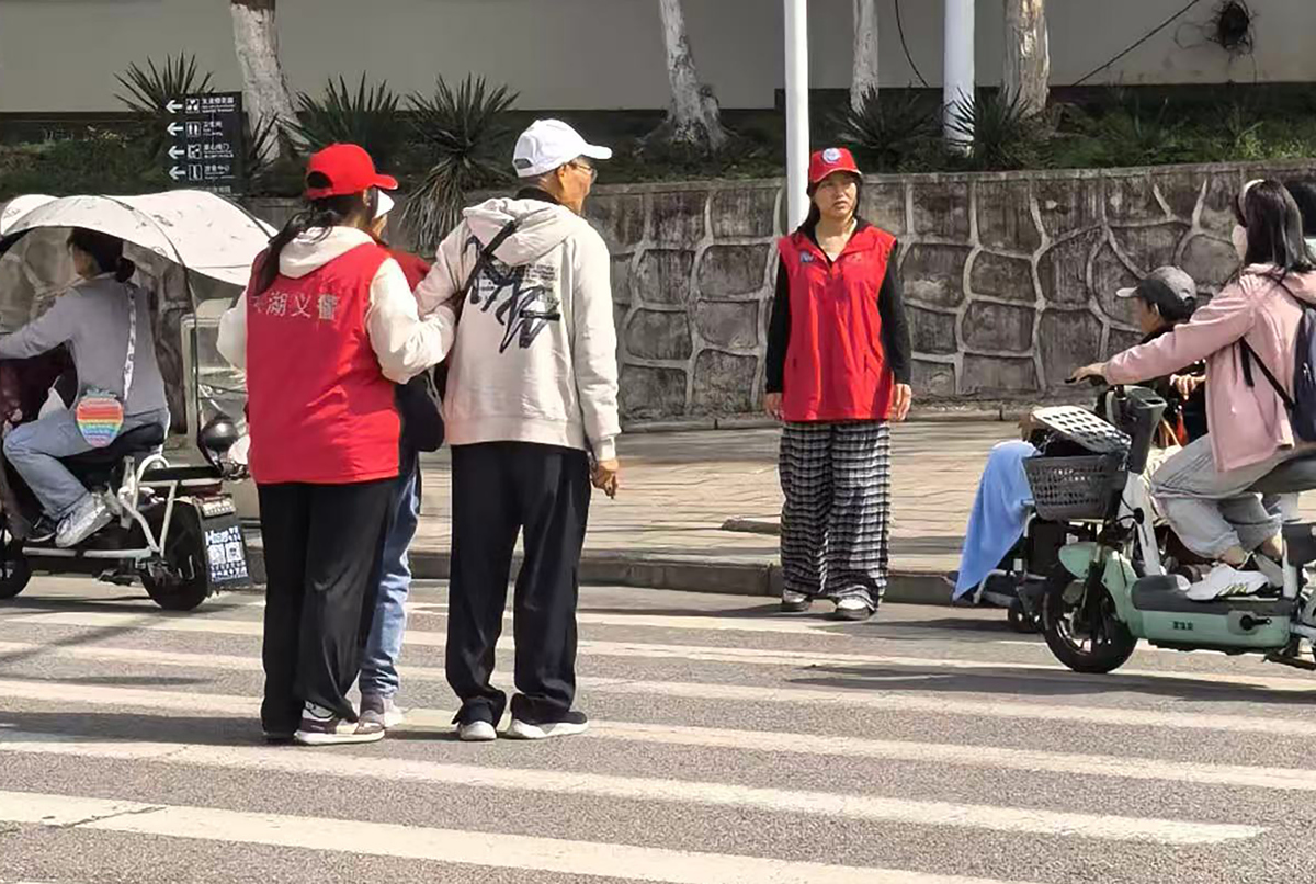 3月22日,磨山交通岗的义警岳文欣发现一位残障人士站在路口,神情焦急。对方想去黄鹤楼,但行动不便又不熟悉路线。岳文欣上前安抚,利用执勤间隙全程护送他去乘车点,一路上避开复杂路段,还特意叮嘱司机帮忙照看。周边游客和司机纷纷竖起大拇指。
