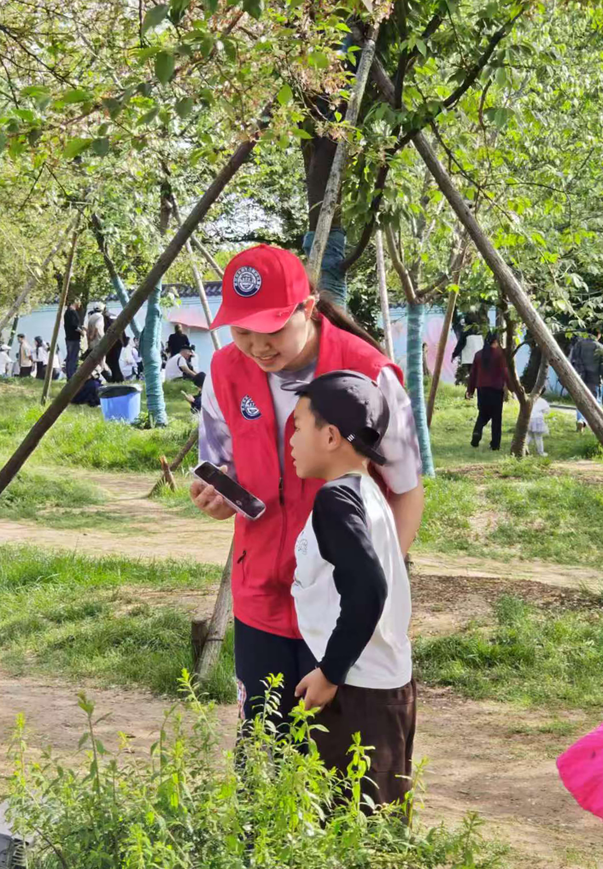 4月5日下午,樱花园内接连走失两名儿童。义警们迅速响应,各点位联动搜寻,不到半小时就在虹桥附近找到了两个孩子,并安全送回家长身边。家长抱着孩子红了眼眶,连声感谢。