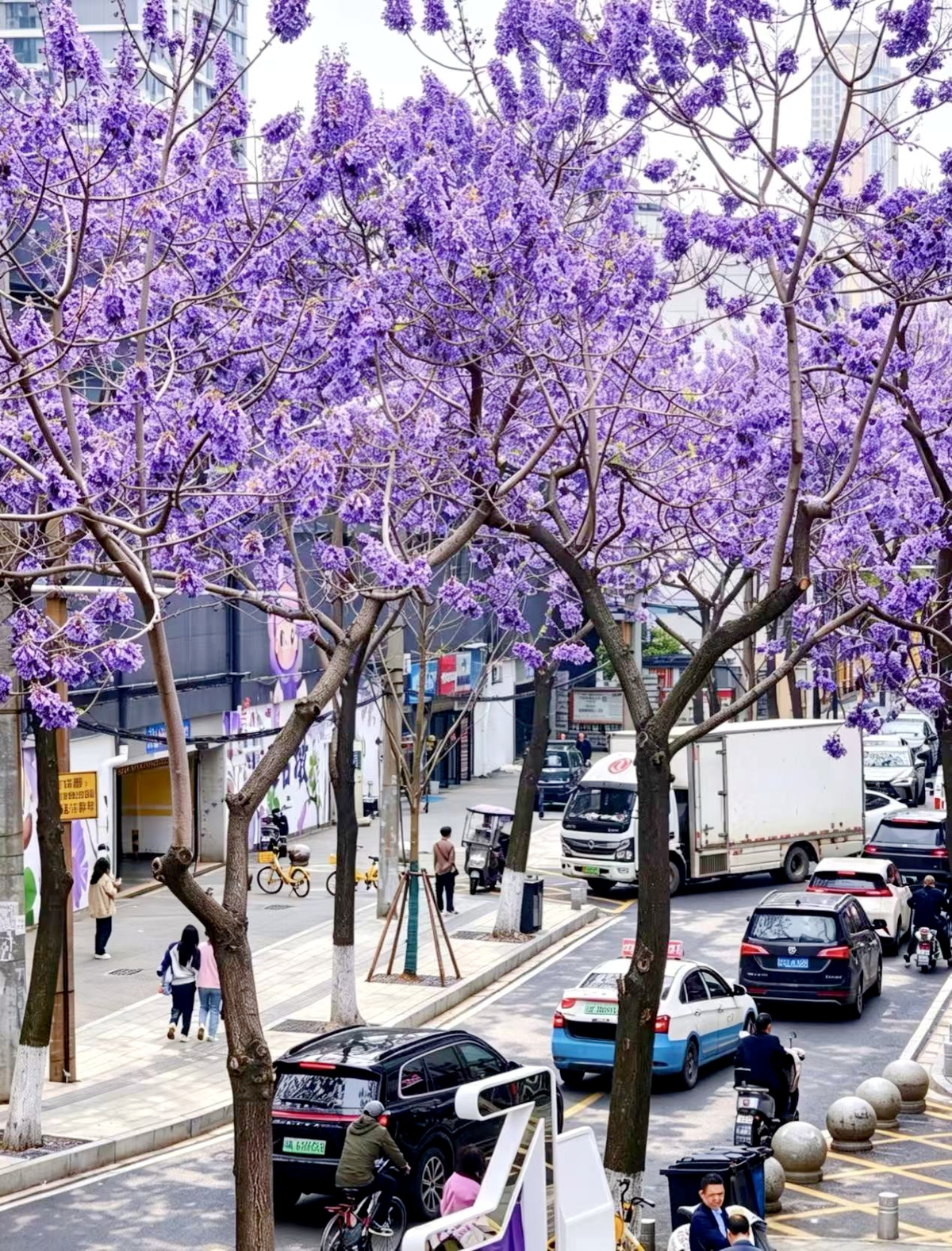 “这些泡桐树,早已不是普通的行道树。”八古墩社区居民罗先生告诉记者,近年来两排泡桐变身“网红花道”,成为社区靓丽IP,“这抹紫色里,藏着我们江汉人对生活的热爱。”