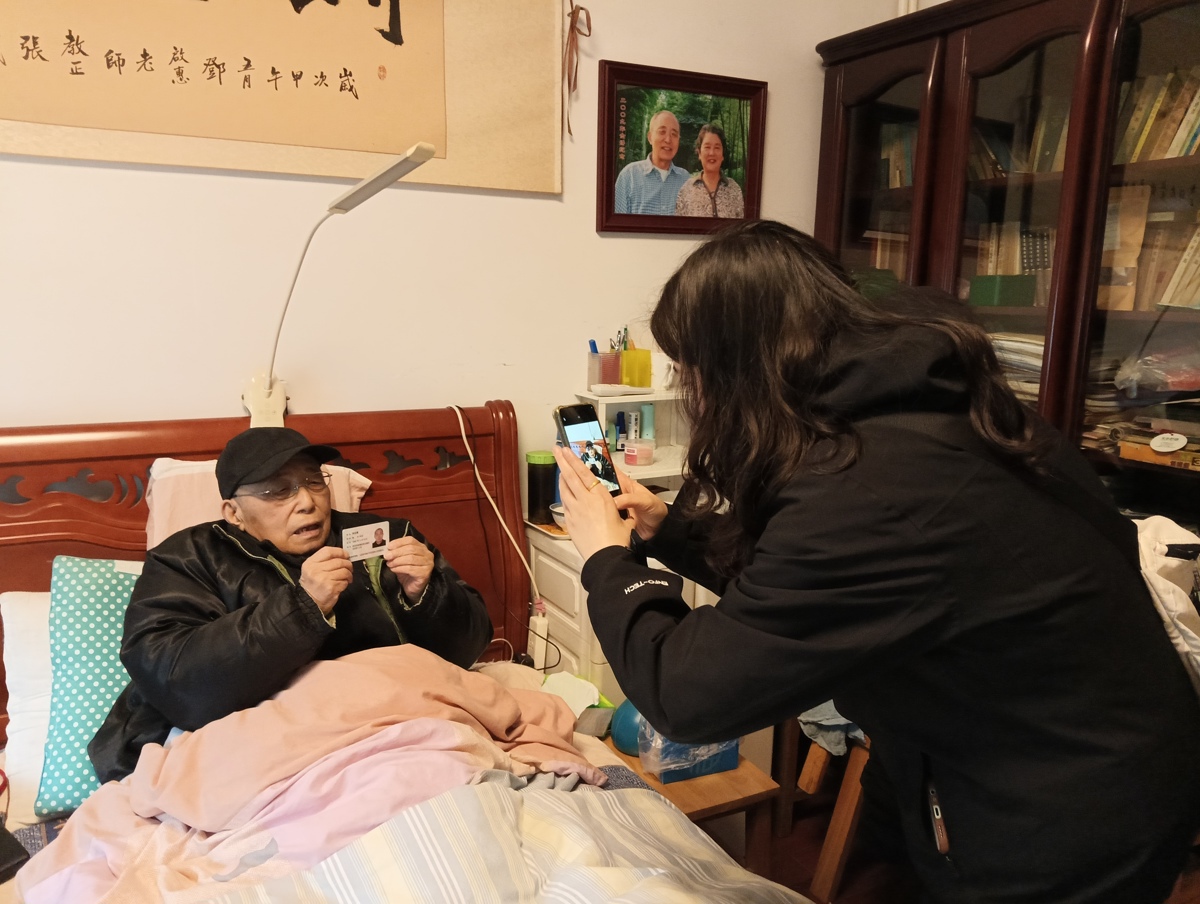 “先认证您自己的信息,再绑定资料,我们一步步来。”“信息一定要核对清楚,拍照时找光线好的地方,保证清晰。”遇到关键步骤,网格员都会放慢节奏,确保老人家属看得懂、记得住。申请提交完成后,还细心告知家属后续如何查看审核进度。