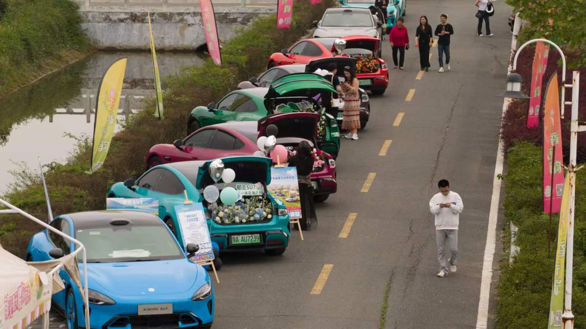 活动现场,小米SU7与绚烂的郁金香花海交相辉映,形成一道独特的春日风景线。主办方以匠心花艺为爱车定制专属花境,霞光紫搭配紫绣球、海湾蓝搭配飞燕草等创意组合,让鲜花与车身自然融合,展现科技与自然的温柔碰撞。众多车友漫步花海、打卡留影,在春风与花香中定格浪漫瞬间,沉浸于春日独有的惬意与美好。