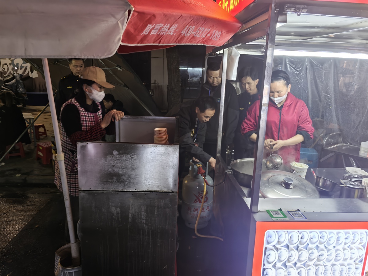 “明明刚灌不久的气瓶,怎么打不着火了?”4月13日晚,新洲区摩尔城夜市正值经营高峰,炸串摊主王女士焦急地找到正在巡查的城管队员,城管夜查队员立即联系送气工到场,迅速帮忙检修处置。“平时他们每天都提醒我们注意燃气安全,所以一出问题我就想到找他们,很快就解决了!”王女士感慨地说。