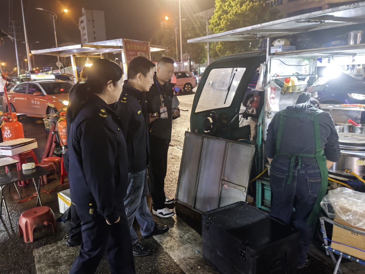 这一幕是新洲区城管执法局持续开展夜间燃气安全检查的常态缩影。为严格落实燃气安全管理要求,今年以来,新洲区城管执法局统一部署、集中行动,由该局相关领导带班组织燃气办、执法大队、燃气企业等三方安检人员开展夜查行动,针对夜市外摆点、商圈、学校周边摊贩的燃气使用安全,展开常态化巡查。