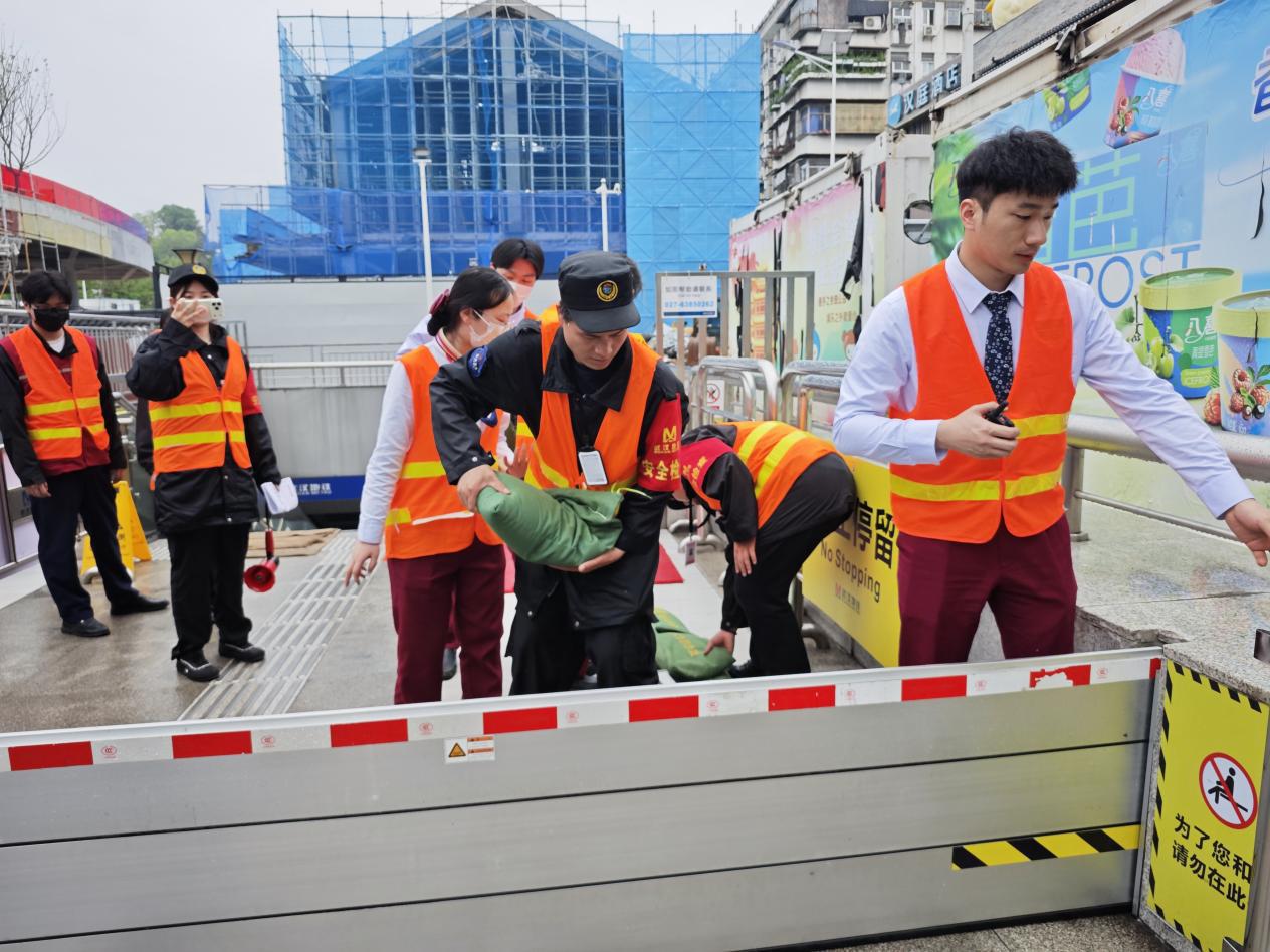4月14日,武昌区中华路街楚材社区联合武汉地铁公司开展武汉地铁5号线司门口黄鹤楼站防汛防涝应急演练。演练模拟强降雨致地铁站出口漏水、积水漫延等险情,相关人员发现后立即上报,应急响应迅速启动,社区民兵、志愿者闻令而动,分工协作、快速投入处置。