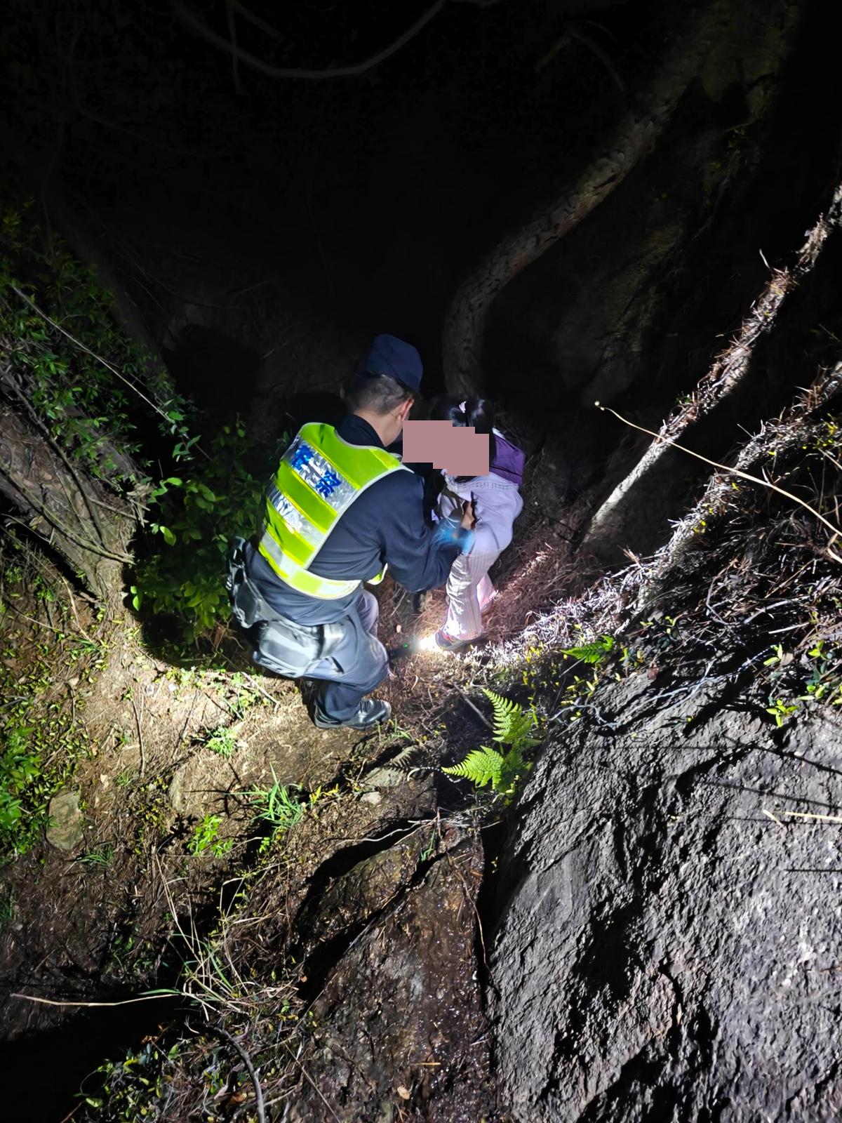 22时许,经过一个多小时的艰难搜寻,终于在一处山坳中找到了瑟瑟发抖的母子四人。经现场仔细检查,四人身体并无大碍,只是因长时间受困和惊吓,显得十分疲惫。考虑到原路返回道路陡峭危险,且同行人员中有女性和小孩,民警决定另寻一条相对平缓的下山路径。