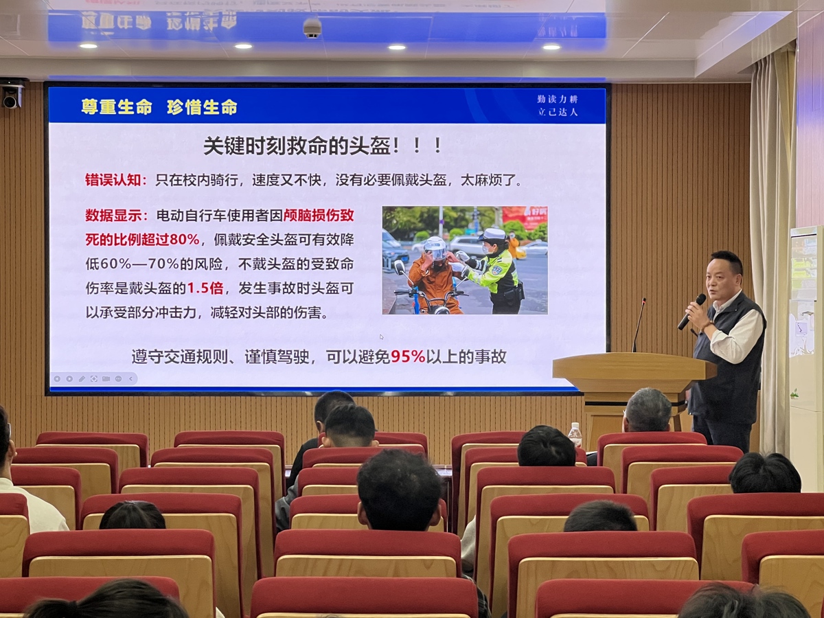 随后,华中农业大学建安部负责人段德君结合校园管理实际,针对校园内超速行驶、随意停车、骑车载人等突出问题进行重点提示,呼吁同学们将交通知识内化于心、外化于行,共同营造安全、有序、文明的校园交通环境。