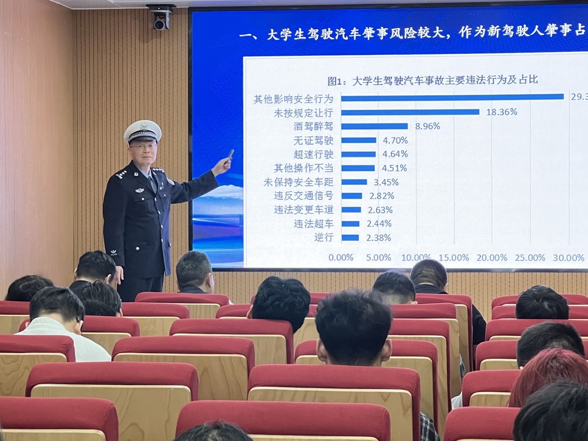 为进一步增强在校大学生法治观念和交通安全意识,筑牢校园出行安全防线,近日,武汉洪山交警“晓说交通”安全宣传团队走进华中农业大学化学学院,联合该校保卫处共同开展校园交通安全宣教活动,为高校学子们送上一堂生动实用的交通安全知识讲座。