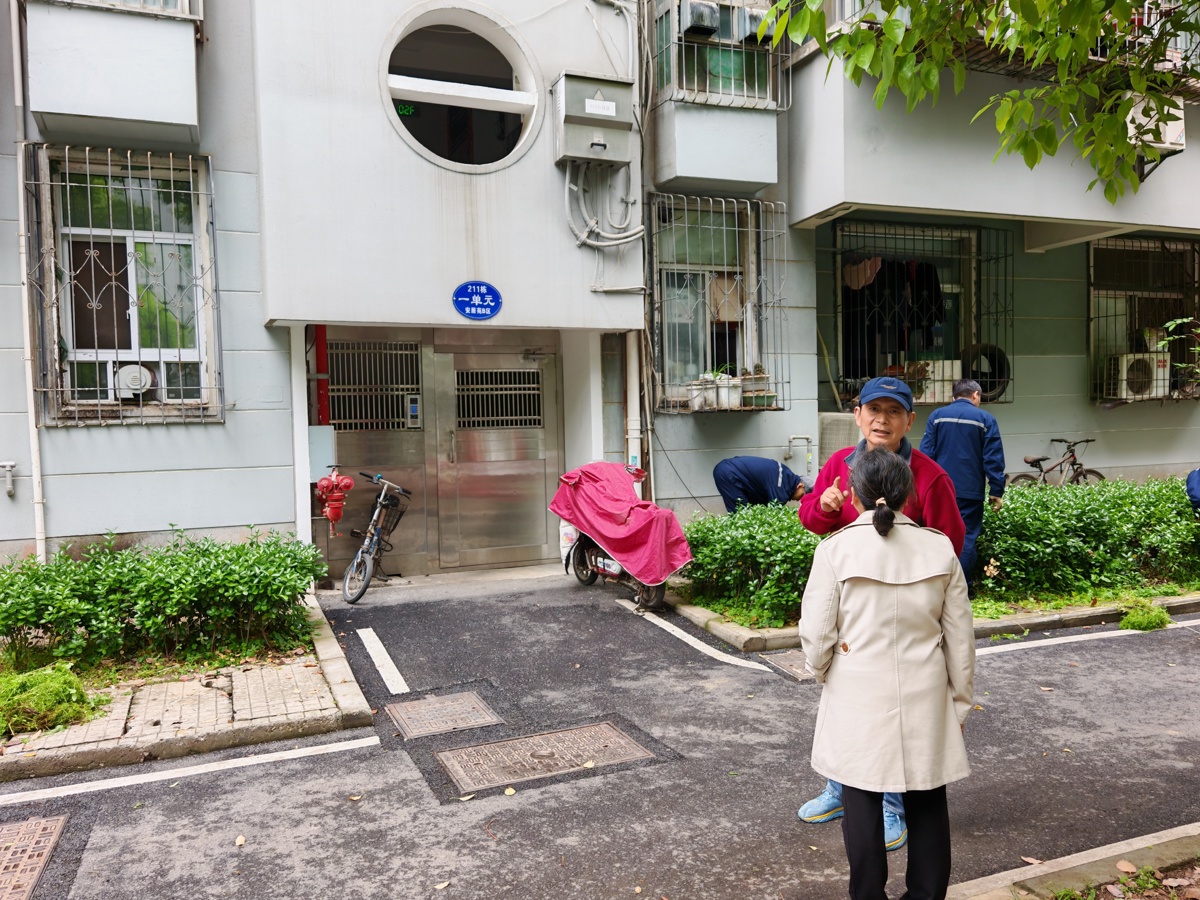 在赵丽琴居住的B区211栋1单元门口,邹小平仔细查看楼栋结构和周边布局,“你们楼栋走廊比较长,平层入户可能性蛮大。”刘丽琴紧紧跟着他,目光落在楼栋入口处,补充道:“邹师傅,我们这栋一楼都是门面,没有常住住户,相对来说,电梯入户对周边住户的影响应该会小一点,就怕后续施工有顾虑。”邹小平说:“单从电梯施工角度来说,你们单元比207栋4单元条件要更好一些。”