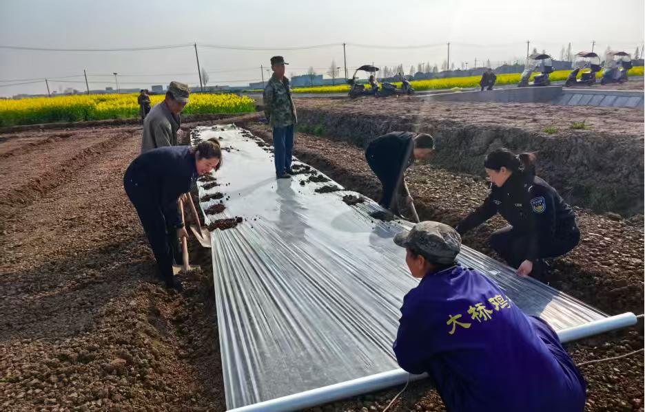 权娴二话没说,卷起袖子就下地。她一边盖膜,一边掏出手机呼叫“枫警娘子军”的邻村姐妹李婷、肖克英。两人很快赶到。点种的、铺膜的、盖土的,大家分工协作。