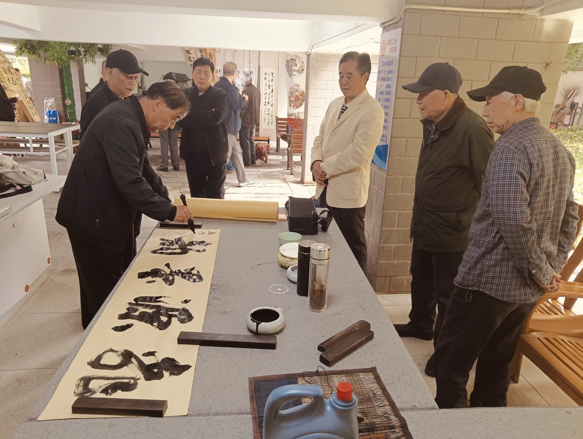 另一边,几位老师傅正围着墙上的大幅山水画感慨:“以前想练个字、交流个作品,要么在家挤得慌,要么没个正经地方,现在好了,这阵地宽敞又亮堂,连展示作品的地方都有,咱们随时能来切磋。”“可不是嘛,以后再也不用找借口凑地方,想写就来,写完还能挂这儿给大家瞧瞧。”