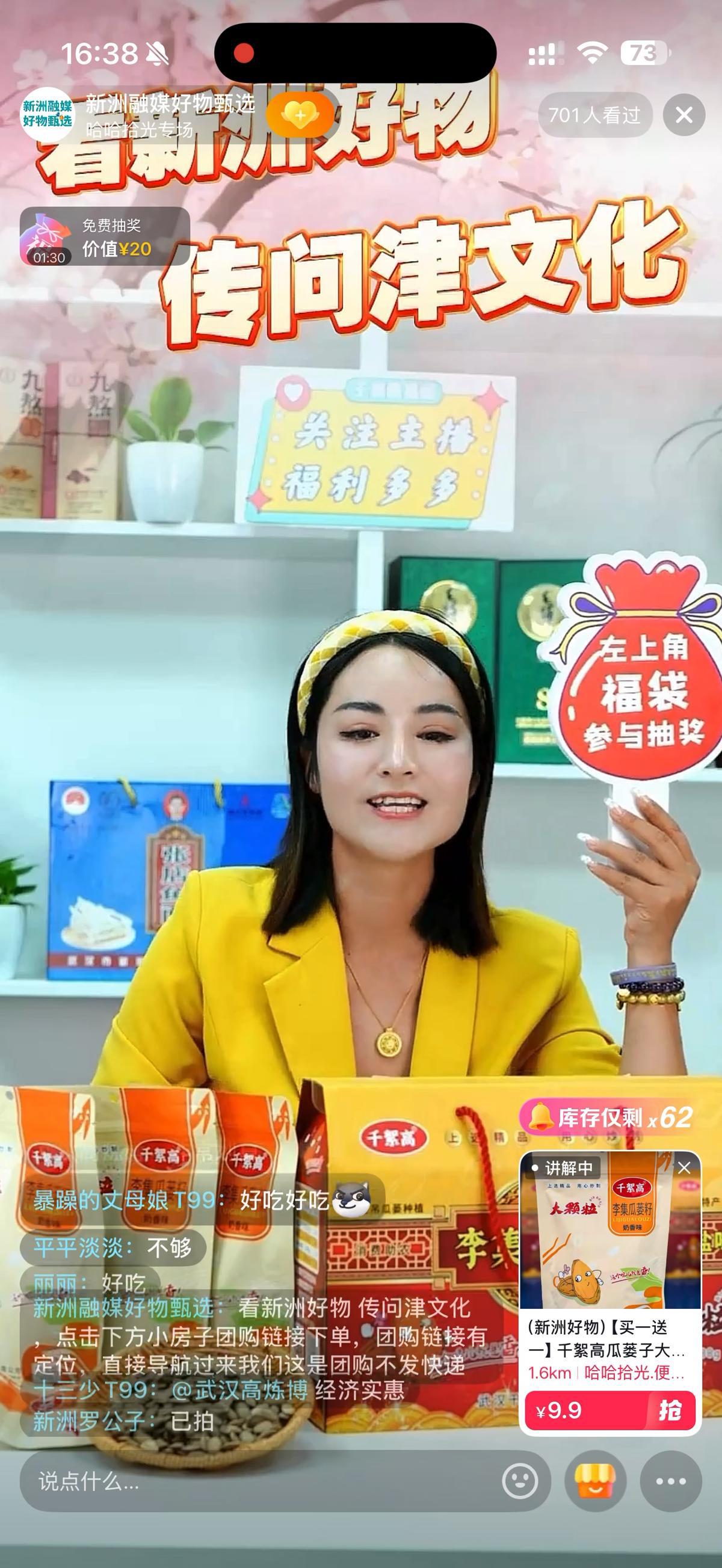 直播间内,除了专业的产品推介,还精心设置了好物秒杀、互动抽奖等趣味环节,“关注直播间,评论‘新洲好物’,就有机会免费领取双柳泡菜一份!”主播们的话音刚落,网友们的互动热情瞬间拉满,点赞、评论、下单的提示音此起彼伏。