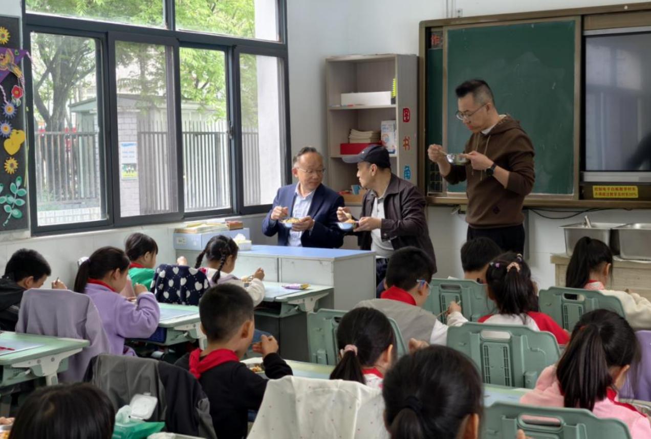 4月15日,武昌区中华路街道组织区人大代表、政协委员走进中华路小学,开展校园食品安全专题调研监督活动。代表委员们直接来到学生教室,与孩子们一同排队打饭、同桌就餐,通过“沉浸式”陪餐体验,实地了解学生餐食质量及日常管理情况。
