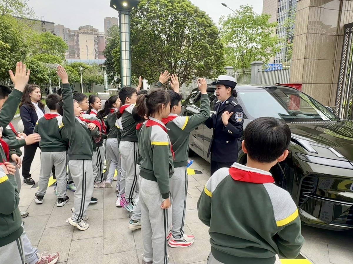 “不在车前跑,不在车边站,不在车后留。”在“丽斯交通课堂”上,江岸区分局交通管理大队民警彭丽斯把一辆SUV“开进”课堂,以真实车辆为教具打造沉浸式实景课堂。通过“大家来找茬”情景游戏,还原放学路上的危险瞬间,带领孩子们排查出行隐患。民警现场讲解车辆盲区风险,让孩子们轮流坐进驾驶室,亲身体验司机视角;其他同学则躲在车旁盲区内,亲身感受“看不见的危险”。“原来蹲在车边,司机叔叔真的完全看不到我们!”孩子们纷纷惊呼。