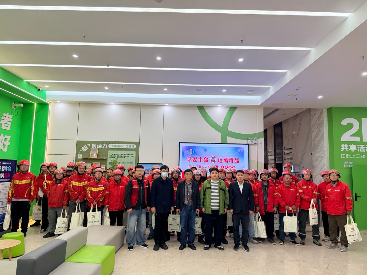 当天下午,沌口街永济社区在泰富城广场组织开展全民国家安全教育日禁毒主题宣传教育活动,面向外卖骑手、快递员、网约车司机等新就业群体,邀请沌口司法所、沌口街道禁毒社工、湖北敏讷律师事务所杨韬律师共同参与宣讲工作。