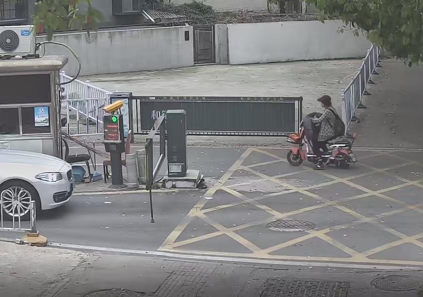 监控视频显示,该女子离开时步伐急促,骑乘一辆粉色电动自行车离开,16时11分行驶至团结生鲜市场附近,将电动自行车停在路边一辆轿车后方;16时13分,该女子再次出现在监控视频画面中。