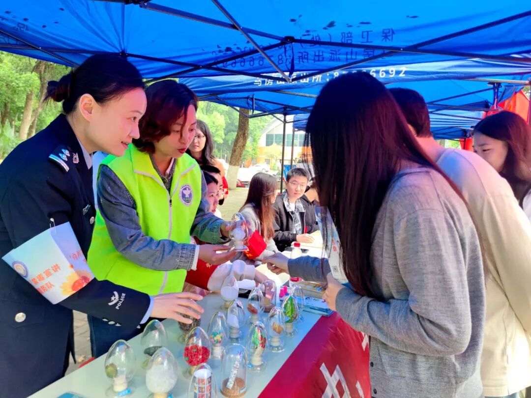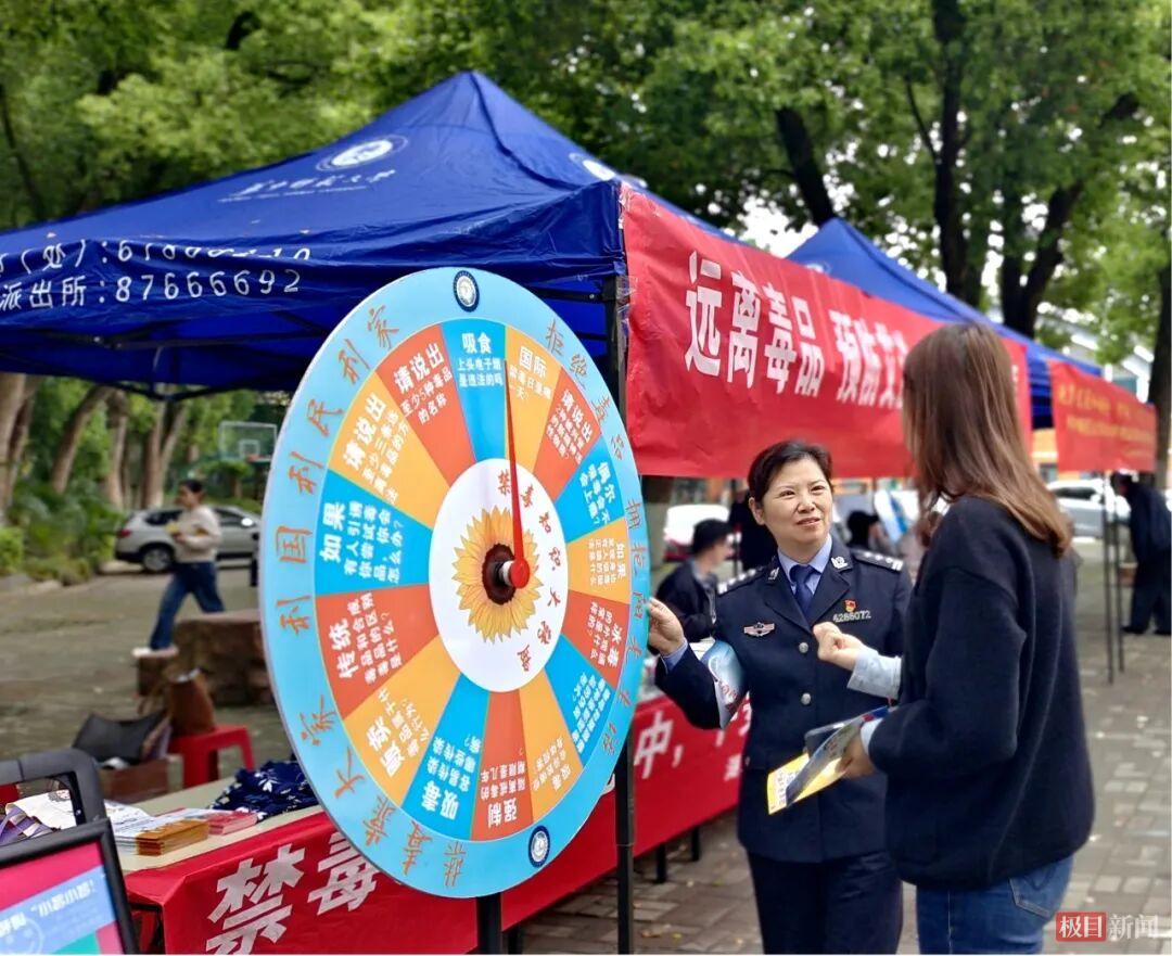 上午11时,华中师范大学小树林食堂对面,法学院志愿者与禁毒社工布置起智能禁毒展板、有奖大转盘、毒品仿真模型等互动设施,将普法宣传变成生动的“游园会”。学生们通过触摸屏了解依托咪酯、“笑气”等新型毒品的伪装形态与危害,系统自动生成防毒建议;禁毒社工手持“奶茶粉”“跳跳糖”等仿真模型,现场拆解毒品的伪装套路。“原来毒品离我们并不远,这些伪装太具欺骗性了!”一名大一新生听完讲解后感慨道。