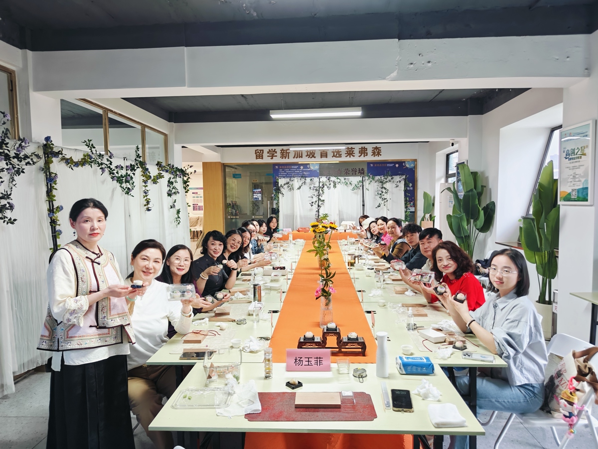 活动尾声,现场还开展了茶艺品鉴与分享环节,参与者们品尝着亲手制作的茶果子,搭配醇香茗茶,感受中式生活的雅致与惬意。