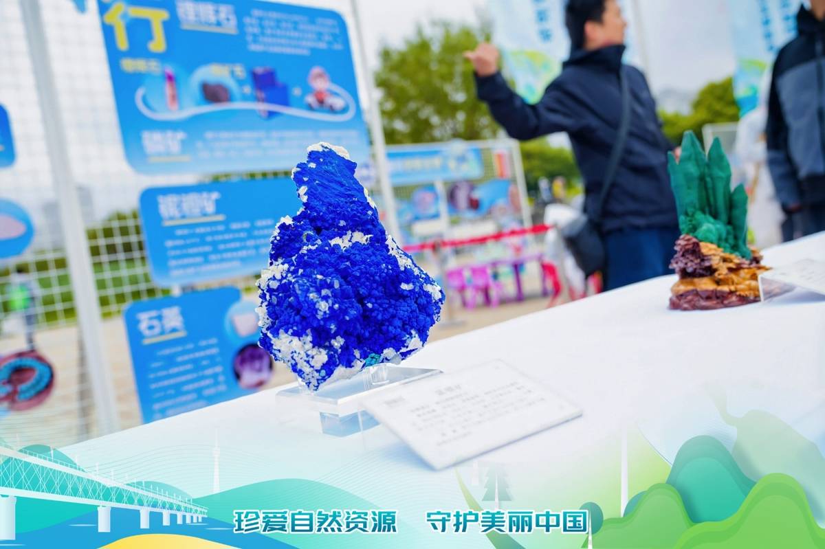 孔雀石、蓝铜矿这些平时只在书本上见过的矿石标本,这次真真切切摆到了眼前。一群小学生围着展台,眼睛都看直了。