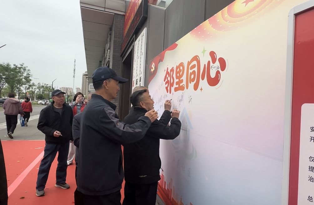 揭牌仪式简朴庄重,在热烈的掌声中,到场领导与历任社区书记共同为社区新办公楼揭牌,红绸落下,标志着社区服务阵地全面升级,为民服务工作迈入崭新阶段。办公楼门口特别设置“邻里同心”签到墙,来宾与居民纷纷驻足签名留念,定格同心共建的美好瞬间。