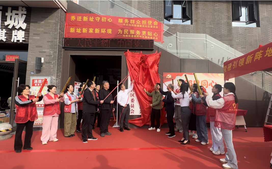 4月20日,武汉经开区沌阳街新民社区隆重举行新办公楼乔迁揭牌仪式,正式在新址揭牌办公。街道包保干部、社区历届党委书记齐聚现场,与党员代表、居民志愿者及群众共同见证这一重要时刻。