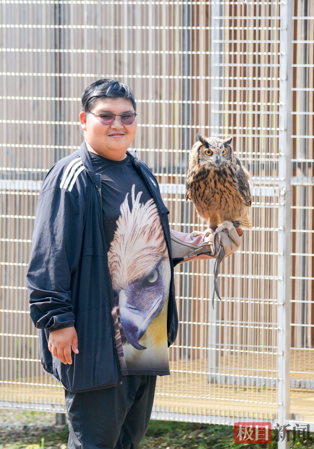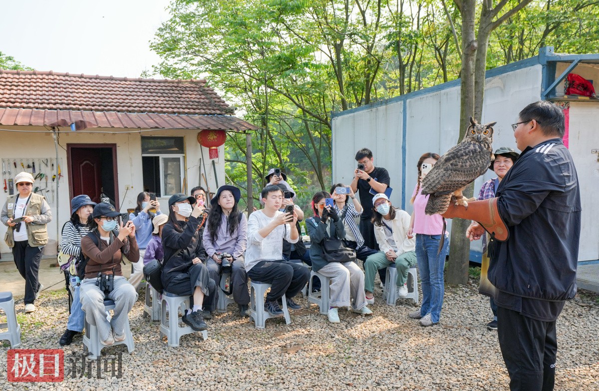 4月18日,武汉观鸟协会在江夏苍羽猛禽救助中心举行了一场猛禽科普及放飞活动。“雕鸮头可转270°、游隼最快一秒可飞70米……”放飞前,救助中心负责人李思敏将正在接受救助且恢复良好的雕鸮、苍鹰和游隼从笼中带出来,现场为志愿者们做科普。