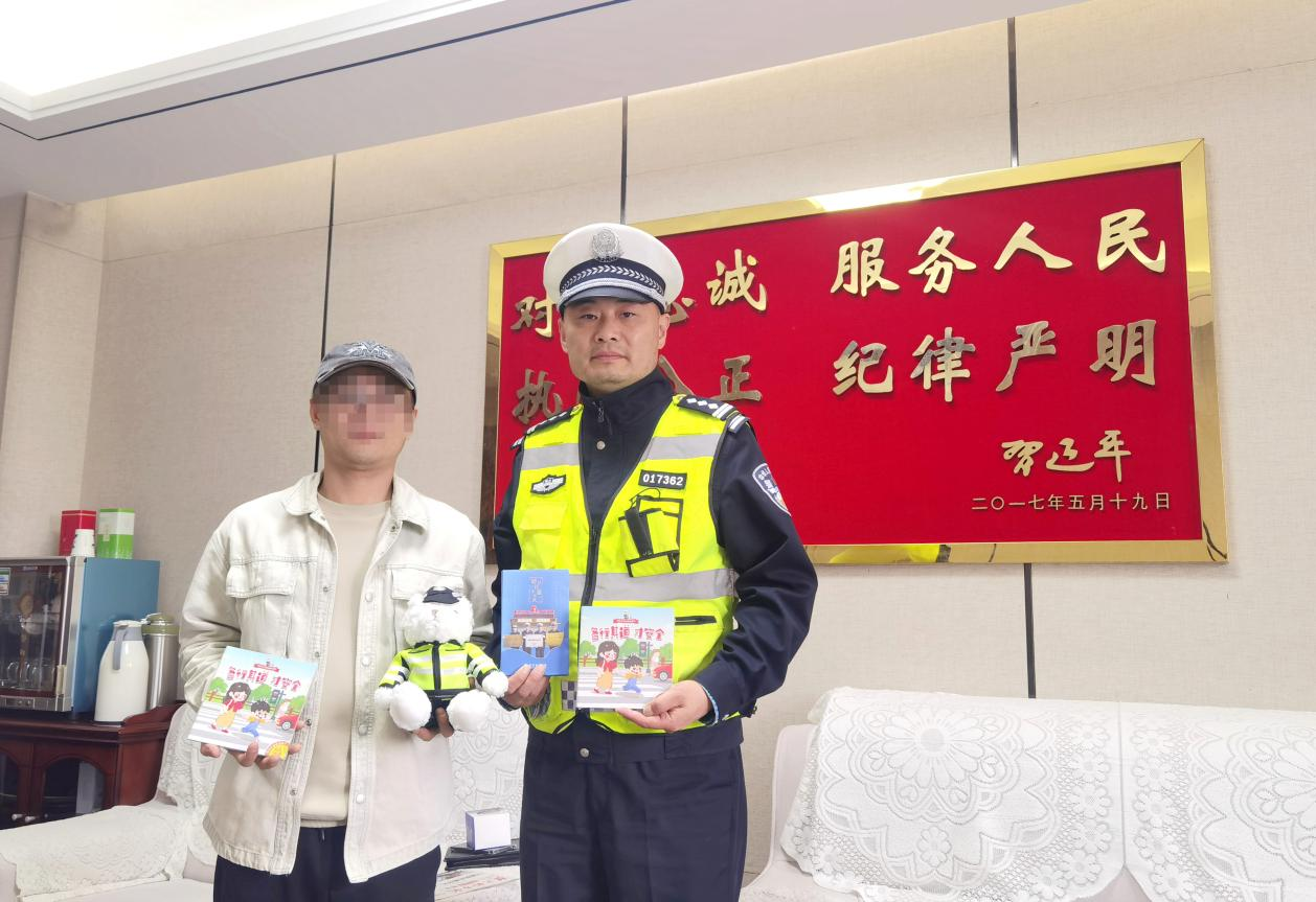 4月22日,武汉市硚口区交通大队民警专程上门,为陈金太送上了网红“交警小熊”与交通安全系列文创小礼品,当面表达了对他的肯定与表扬。