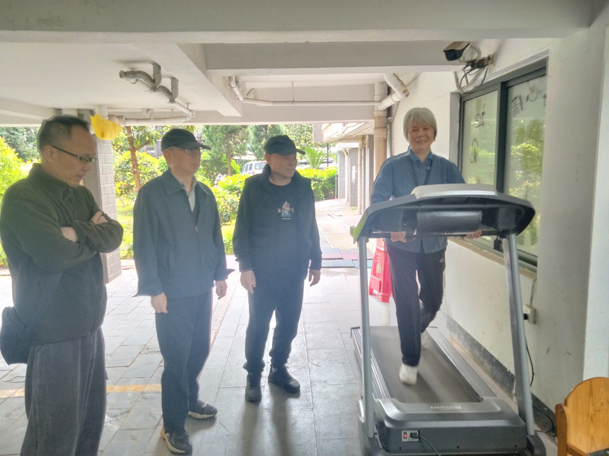无论是满头白发的婆婆,还是精神矍铄的爹爹,都乐于在这台跑步机上走上几步。尤其是下雨天,大家户外活动没那么方便,位于架空层的这台跑步机就更受大家欢迎了。