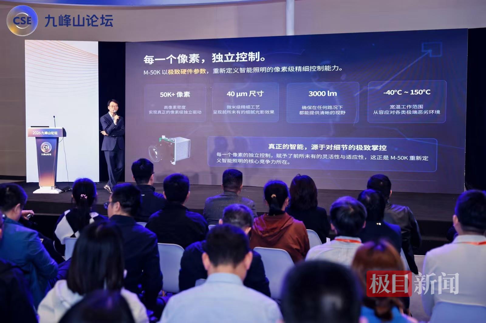 车灯变投影仪,能投射路面导航箭头、可实现车辆智能互联、下车还能亮起暖心光影问候……4月23日,2026九峰山论坛企业新品发布会上,武汉星曦光科技有限公司(以下简称“星曦光”)推出旗舰型车载Micro-LED光源产品M-50K,以顶尖硬核技术,重塑智能车灯行业新标准,开启车载智能光交互全新赛道。