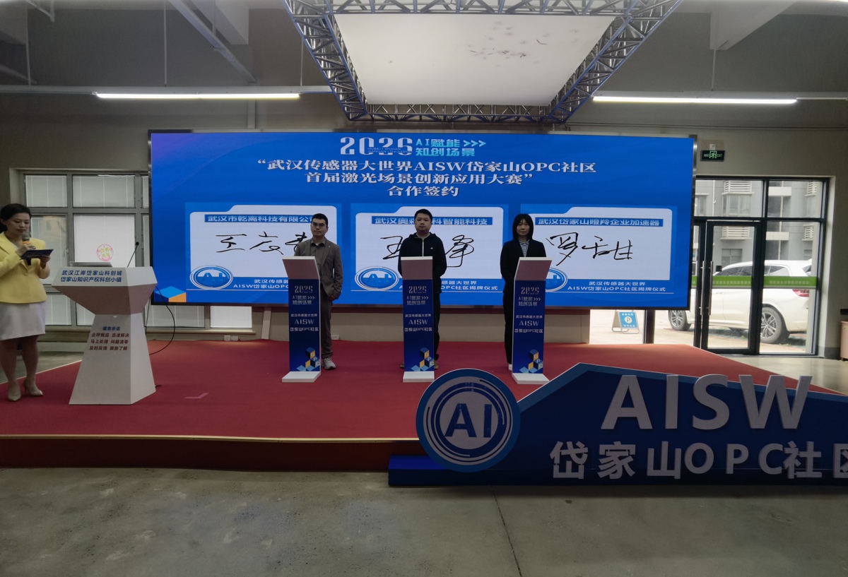 两位创业者的选择,正是岱家山创新生态吸引力的生动缩影。4月23日,恰逢全国知识产权宣传周,以“AI赋能·知创场景”为主题的武汉传感器大世界AISW岱家山OPC社区揭牌仪式暨岱家山知识产权小镇AI场景嘉年华活动,在岱家山成功举办。
