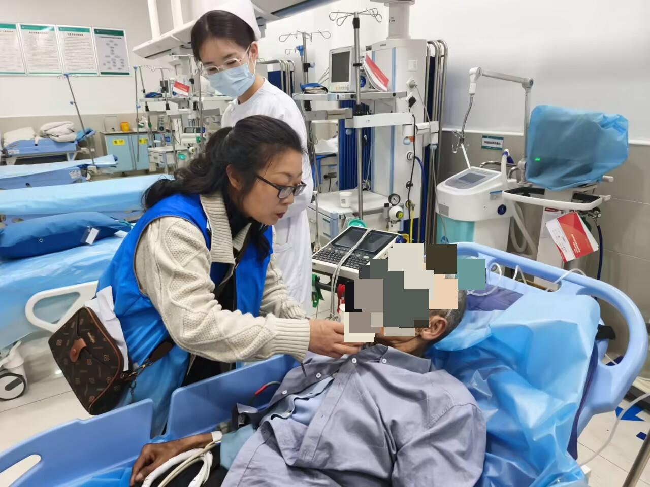 工作人员察觉异常,立即推门查看,只见戢爹爹躺在床上,意识模糊,精神状态极差,反复表示胸口不舒服,情况十分危急。