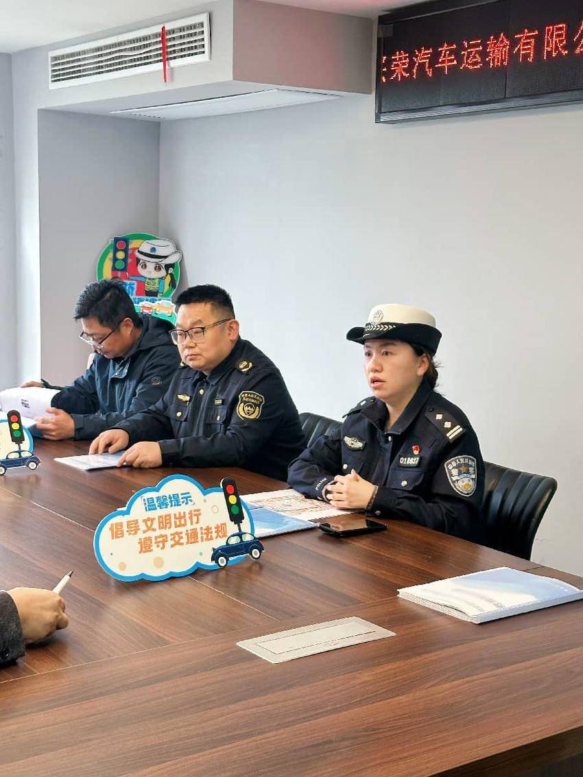 他们现场推行可视化安全操作——校车:亮安全带提示、亮停车示意牌;危化车:亮警示灯、亮反光标识、亮安全告示。民警还结合典型事故案例以案释法,发放宣传资料,引导企业压实主体责任,强化从业人员安全意识。参会司机们感慨道:“这样的宣传有温度,我们记得住!”