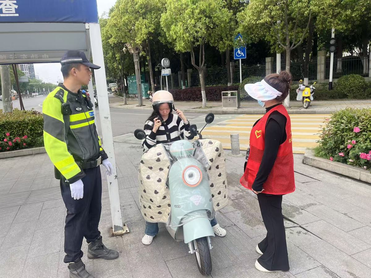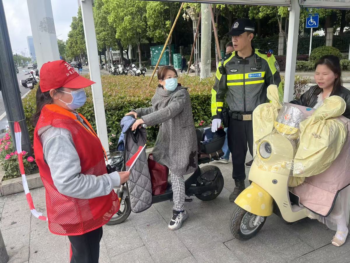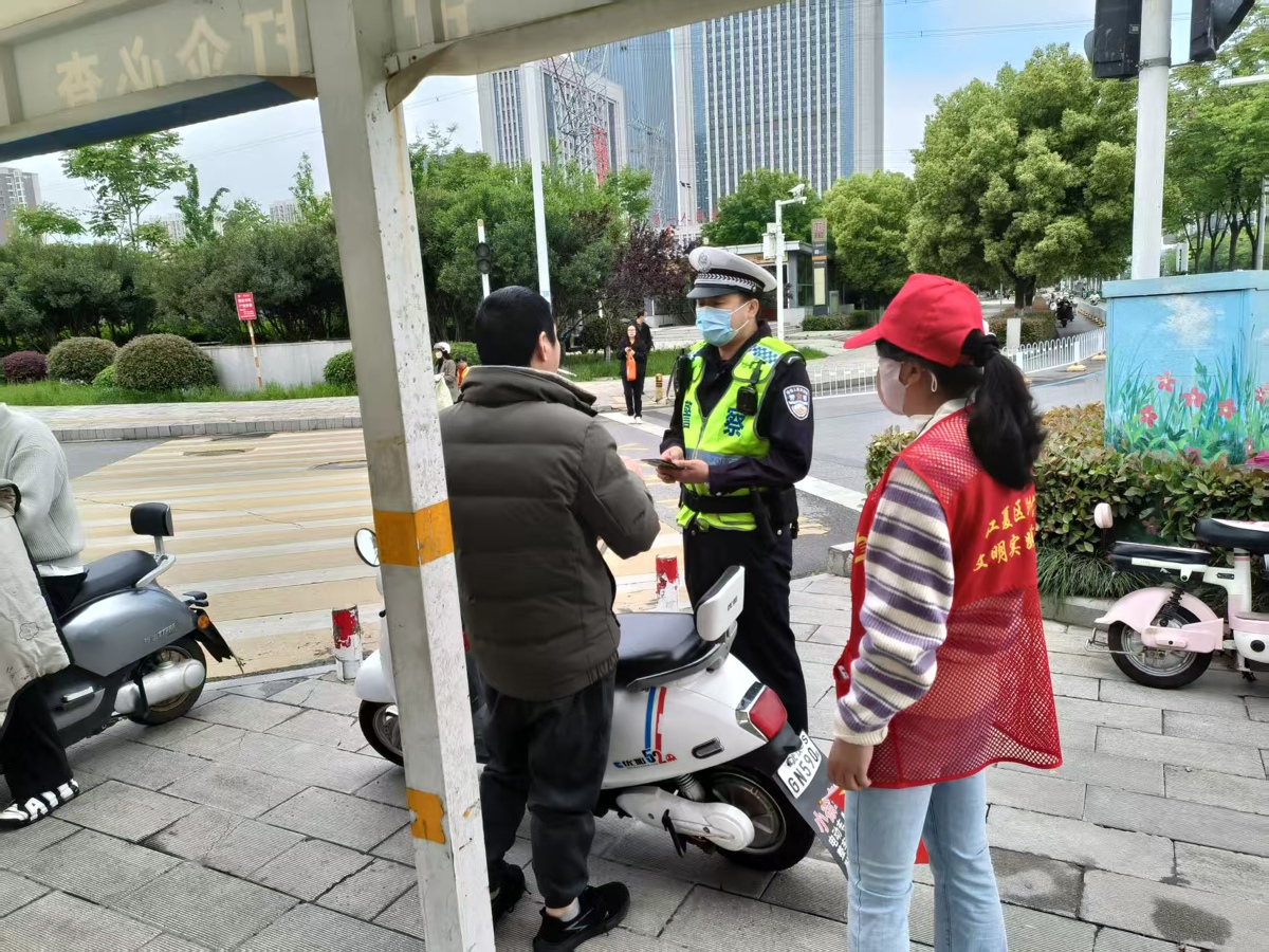 “您好!过马路要注意避让车辆,骑电动自行车记得戴头盔,早晚高峰,人多车多,一旦发生碰撞,头盔就是‘保命符’,可不能图省事忽视安全。”4月24日上午,汉警快骑机动队联合社区志愿者,在谭鑫培路口、金龙大街等重点路段开展“义警”文明交通劝导行动。