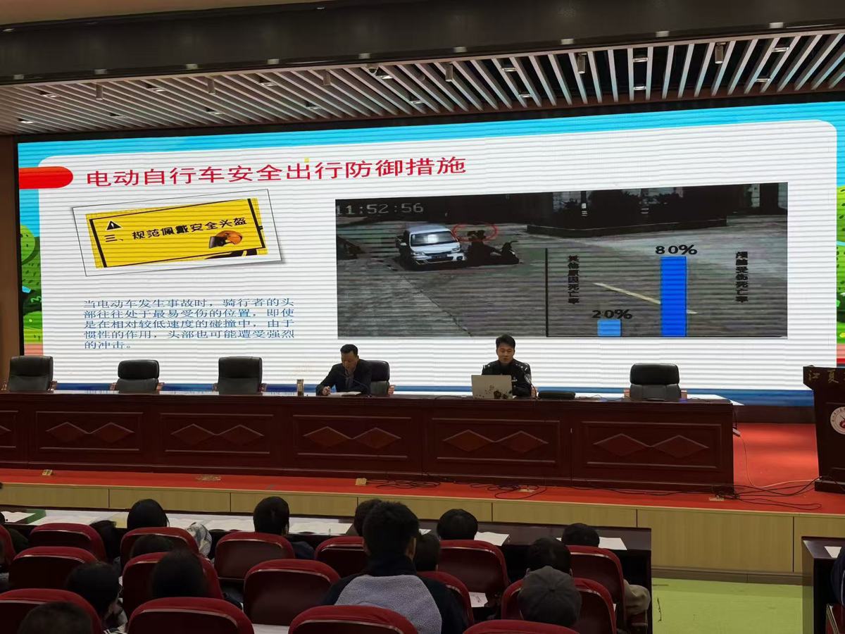 4月23日上午9时30分,大队汉警快骑机动队民警吴振祥走进辖区职业中学,开展上门交通安全宣传活动。活动现场,民警通过播放本地典型事故案例视频,用身边事教育身边人,震撼真实的画面直击人心,让在场师生深刻认识到交通违法的瞬间危险性,时刻绷紧交通安全这根弦。