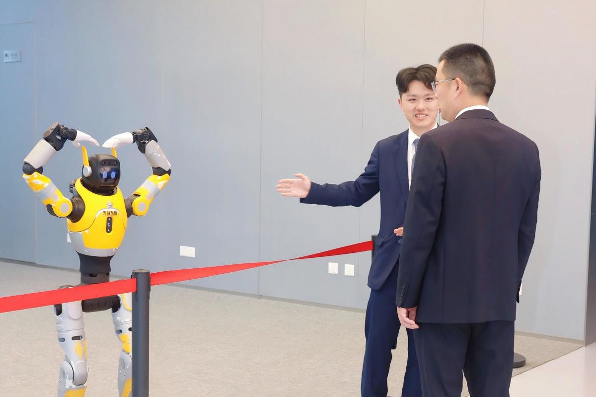 湖北人形机器人创新中心是中部机器人产业高地,已入驻15家机器人公司,年产值达50亿元。在中心一楼展示厅,由光谷东智研发的机器人“光子”伴随音乐翩然起舞。它曾在2025年世界人形机器人运动会上夺得金牌。“别看它个子小,能跑会跳,还能说会唱。”解说员介绍。