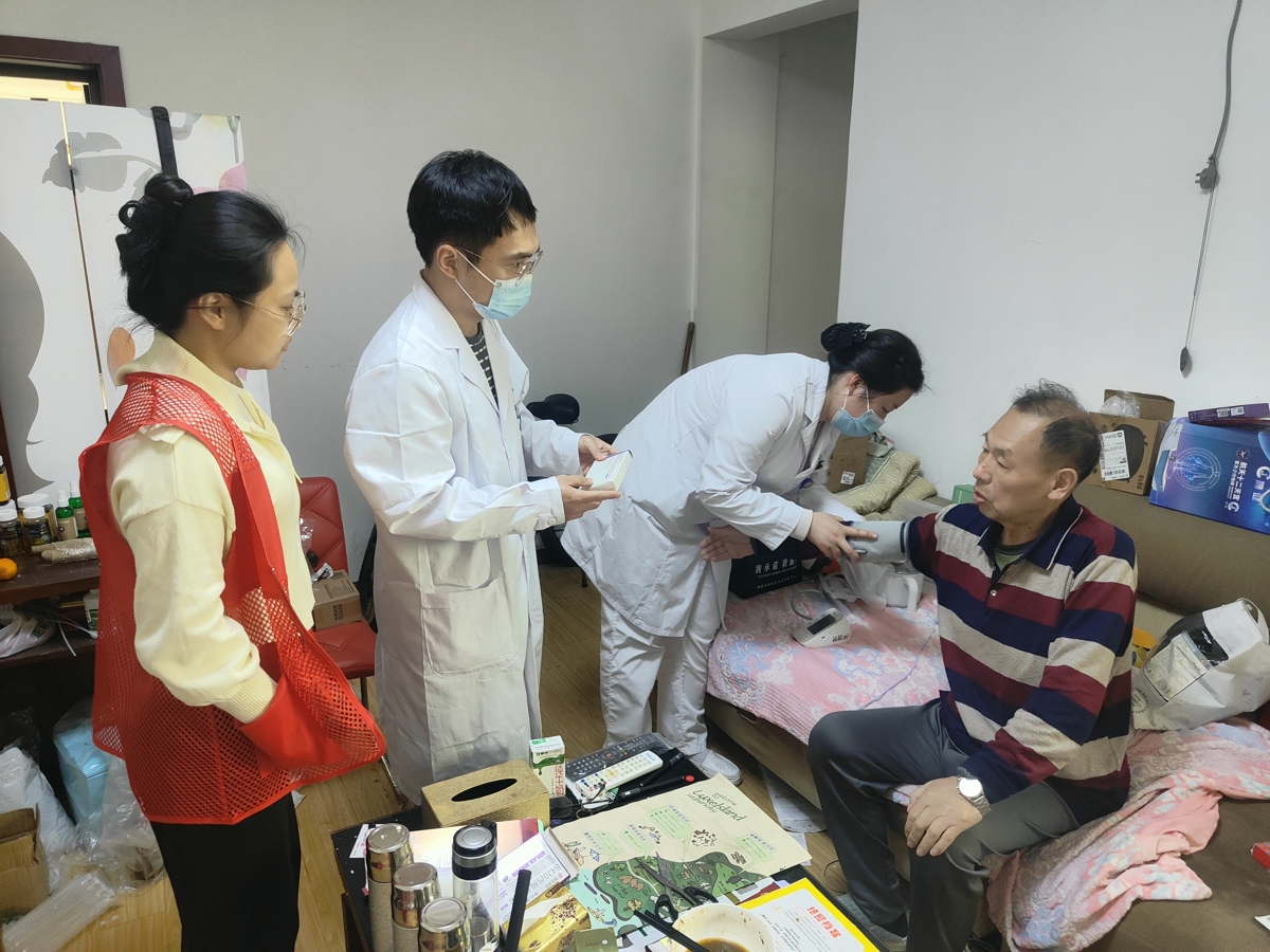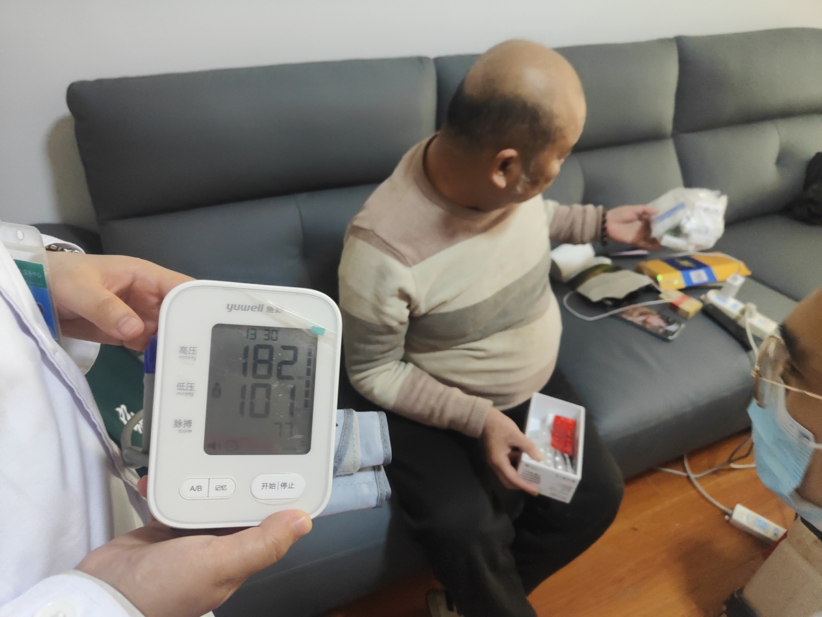 上门服务过程中,不少独居老人的潜在健康问题被及时发现。辖区一位独居余爹爹,日常独自生活常常疏忽身体管理,服务队员上门为其测量血压时,测出血压高达182mmHg。经询问得知,老人因记忆力减退,时常忘记按时服用降压药物,才导致血压急剧升高。医护人员立即安抚老人情绪,现场讲解高血压的危害,细致叮嘱按时按量服药的重要性,结合老人身体情况调整日常养护建议,并帮助老人张贴服药提醒便签,叮嘱社区网格员定期上门提醒,杜绝漏服、断服情况。