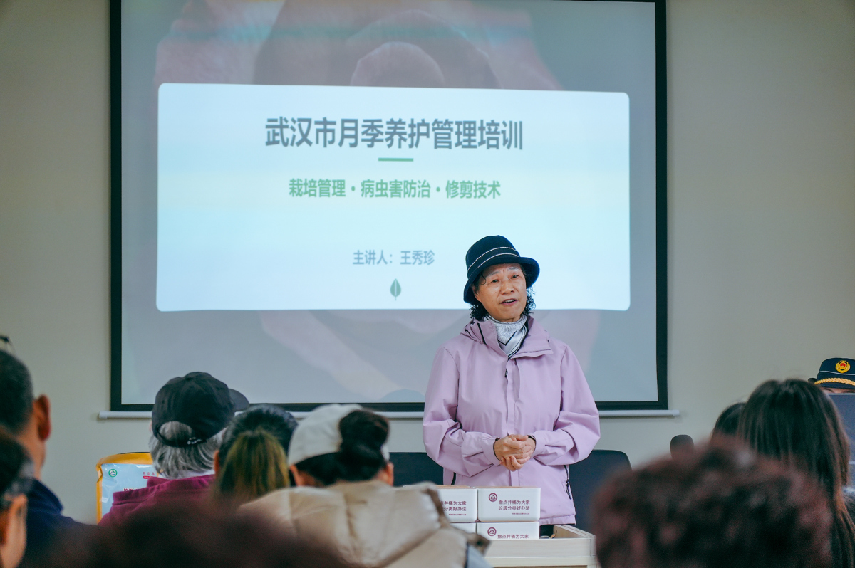 “月季是‘大吃货’,要想开得好,施肥要讲究薄肥勤施,忌浓肥与生肥,以防烧根!”4月23日上午9点,在武汉市东西湖区常青花园举办的“花墙寻芳·园艺共赏”月季文化体验沙龙活动上,原武汉市园林学校校长王秀珍老师,一边拿起城管队员发放的营养土,一边向居民传授月季养护心得。