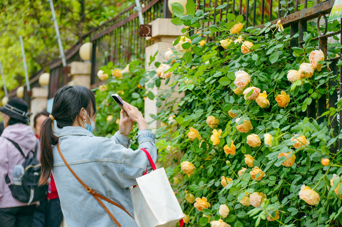 如今,公园环路、花园中路、康居五路等11处景观点位的月季竞相开放,橙红的“夏洛特夫人”、粉色的“达芬奇”、金黄的“黄金庆典”等各色月季如烂漫花瀑,连绵雅致,将辖区道路沿线装扮一新,成为周边居民争相打卡的热门地。