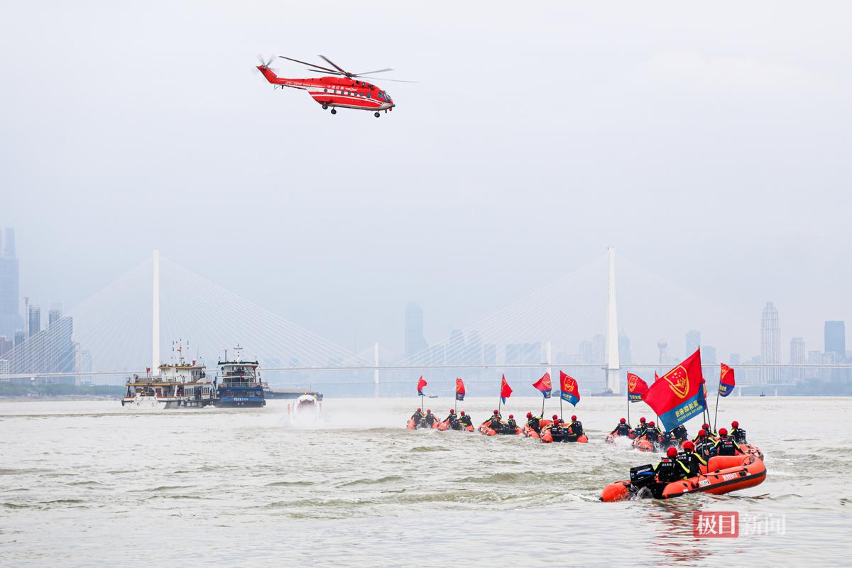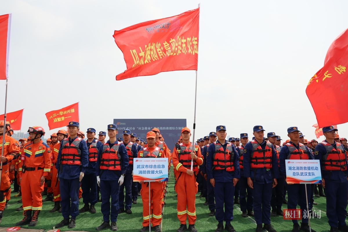 为全面落实国家、省、市关于防汛抢险工作的决策部署,立足“防大汛、抗大旱、抢大险、救大灾”,4月24日15时,2026年武汉市“应急使命”防汛抢险救援综合演练,在洪山区天兴洲长江水域拉开序幕。