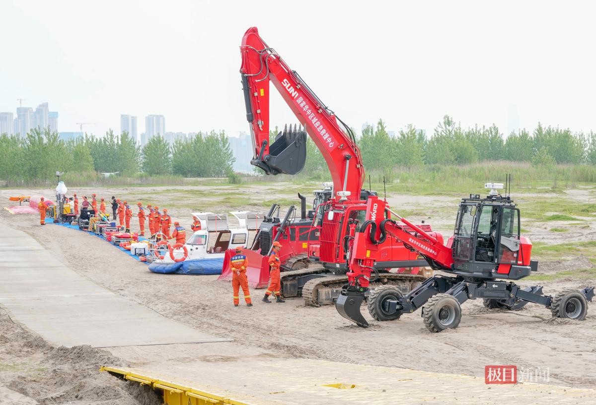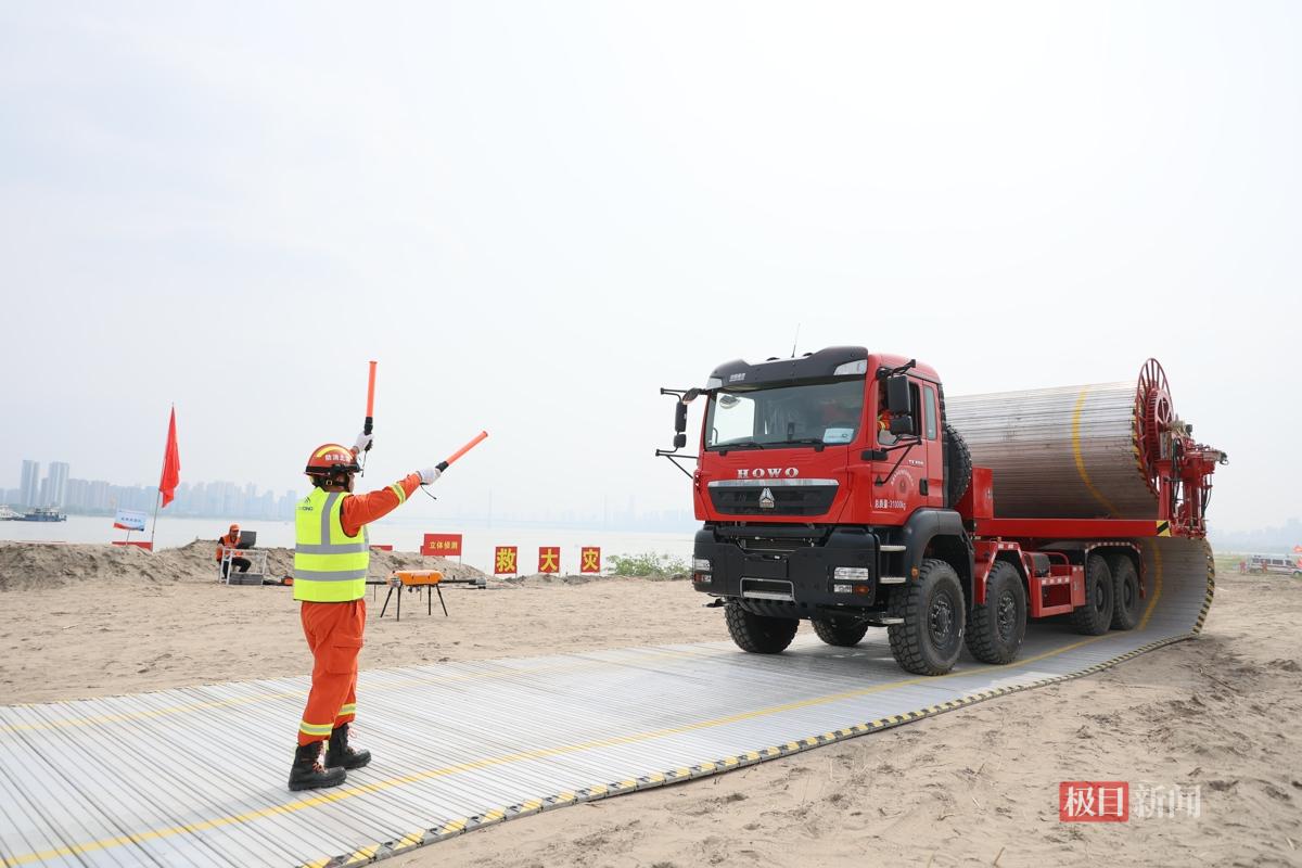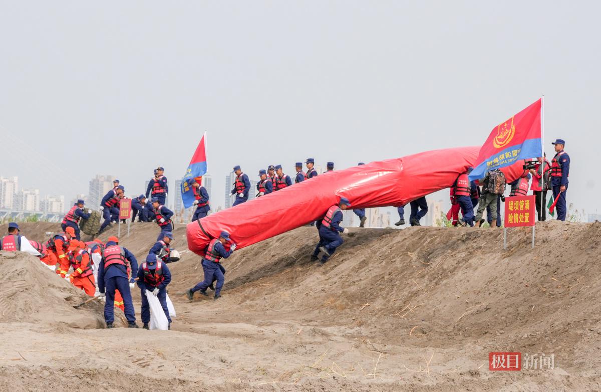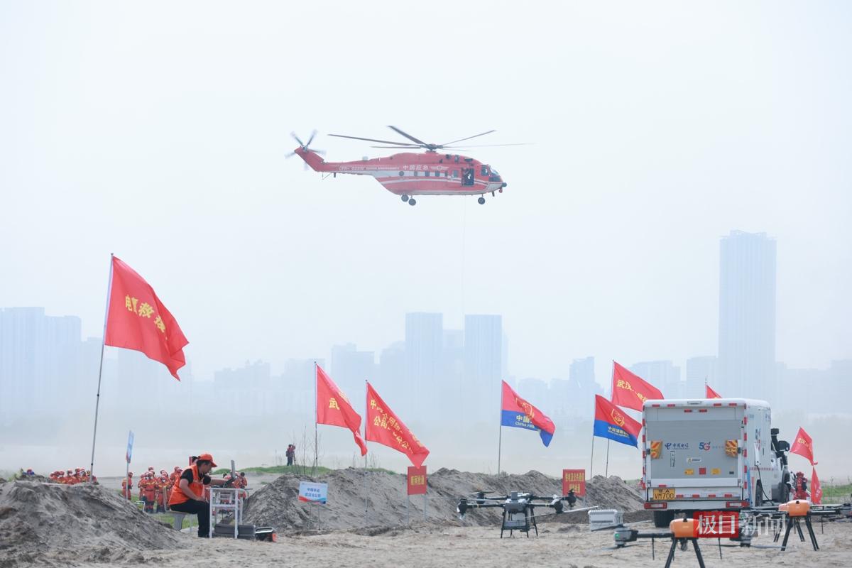 此次演练险情场景复杂、实战难度高,是武汉市首次在道路承载力弱、装备受沙尘影响大的长江沙洲区域开展防汛实战化综合演练。演练科目紧贴实际,覆盖汛期易发、多发险情。参演装备专业化程度高,不仅调动了直升机、大型无人机、水面拖轮、起吊装备,还首次将人行便桥、充气式挡水子堤等一批新型实用装备投入实战应用。