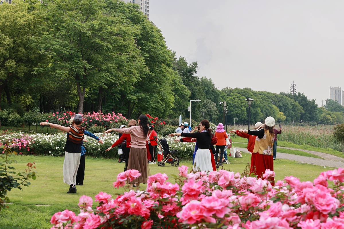 “这里花开得蛮美,离家里又近,特意过来打卡的。”正在幸福湾公园带着孙女拍照的李奶奶说道。