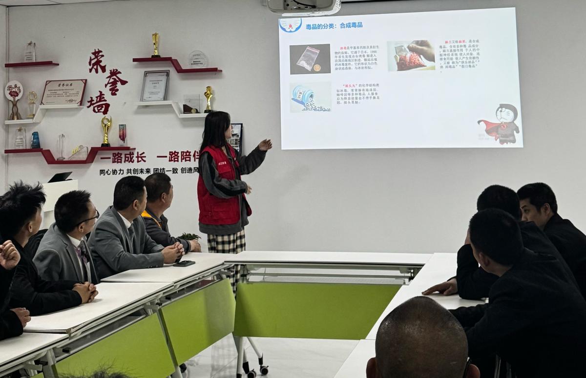 为全面推进禁毒“六进”宣传工作走深走实,筑牢辖区禁毒安全防线,4月20日下午,武汉市洪山区洪山街禁毒社工专程前往辖区融创智谷企业园区,在园区物业服务中心会议室,为全体物业工作人员开展了一场针对性强、实用性足的禁毒知识专题宣讲活动。