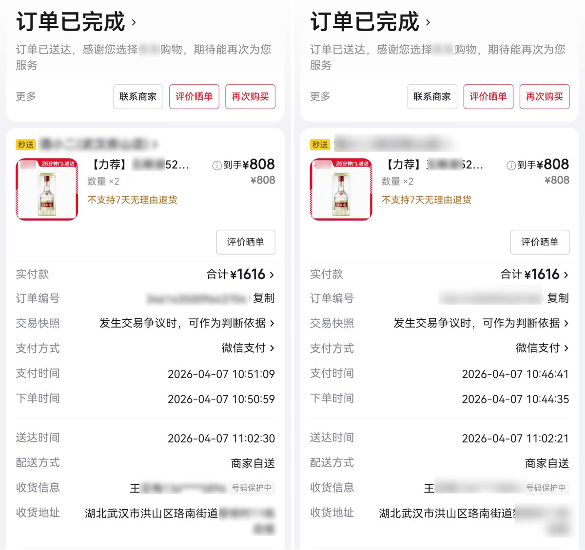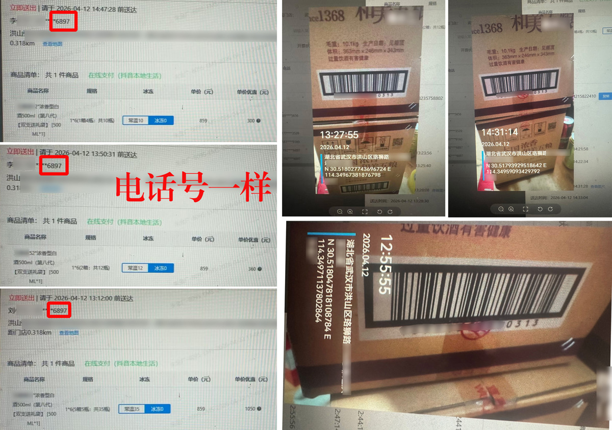4月17日,杨邦鼎再次到店核查。他在系统中查询发现,在王女士核销订单的相近时间,还有2笔高档白酒的核销记录。民警仔细查看这3笔订单的出库照片,发现这3批白酒外包装竟然一模一样,而且3个不同的下单人留下了完全一致的电话号码,这显然不像是正常的交易。