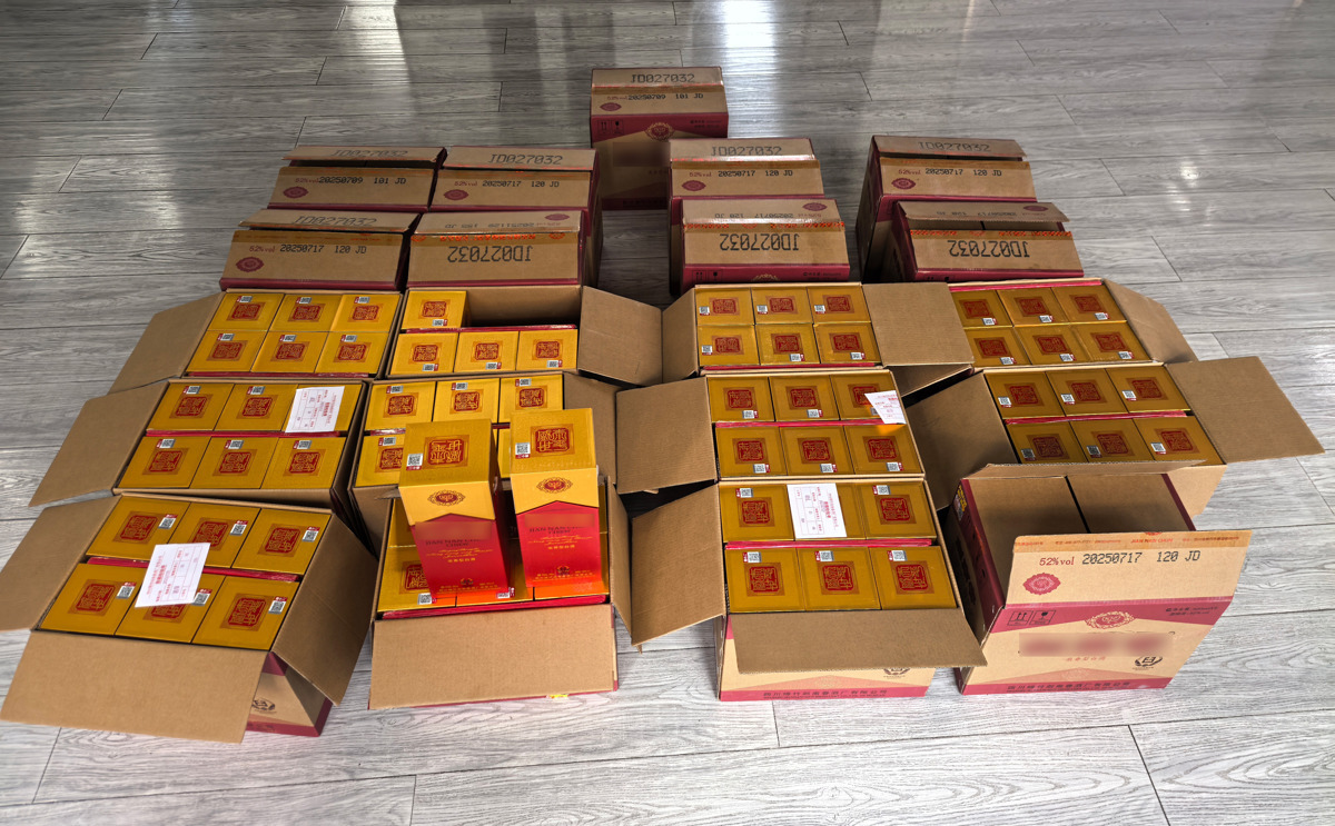 为了省去搬运白酒的麻烦,朱某还准备了一批空白酒箱子做道具,每次出库时,仅拍摄空箱子的照片上传系统,伪造商品正常出库的假象。不料道具被民警一眼识破。