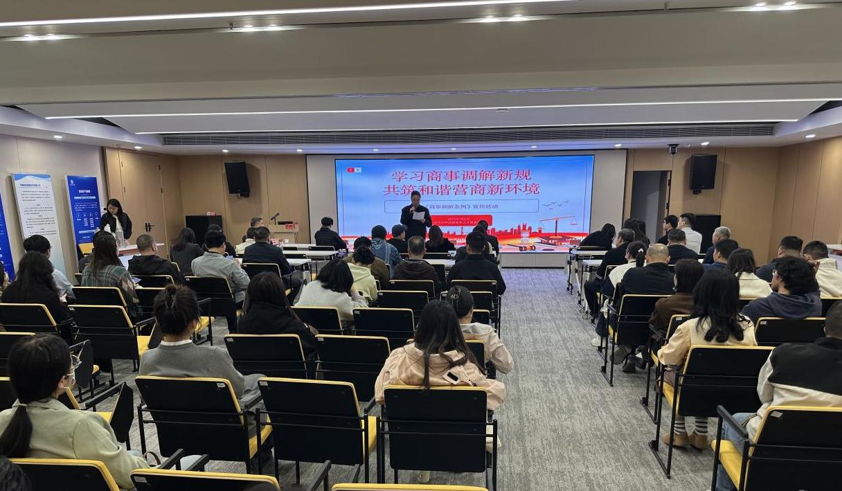 4月22日,《商事调解条例》进楼宇宣传活动在武昌区创新发展人才服务基地举行。