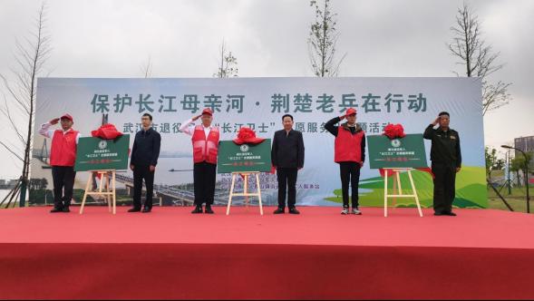 4月24日,武汉市“保护长江母亲河·荆楚老兵在行动”主题志愿服务活动在青山矶江滩举行。