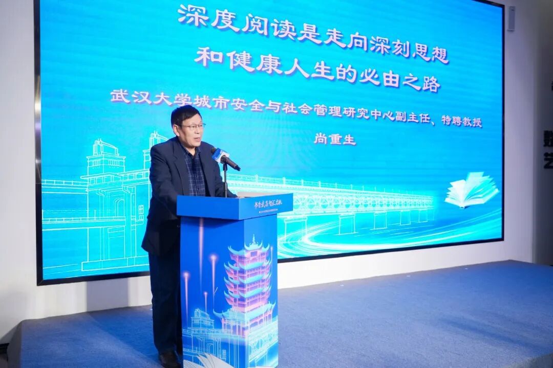 阅读是连接历史与未来的纽带,既传承智慧,也启迪成长。当前,武昌在深厚文脉的基础上,正积极拥抱创新,稳步推进“科创强区”建设。武汉大学城市安全与社会管理研究中心副主任、特聘教授尚重生应邀登台,带来题为《深度阅读是走向深刻思想和健康人生的必由之路》的专题分享,他结合武昌深厚的人文底蕴与数字经济发展态势,深入阐述了“传统阅读+科创阅读”的融合路径。