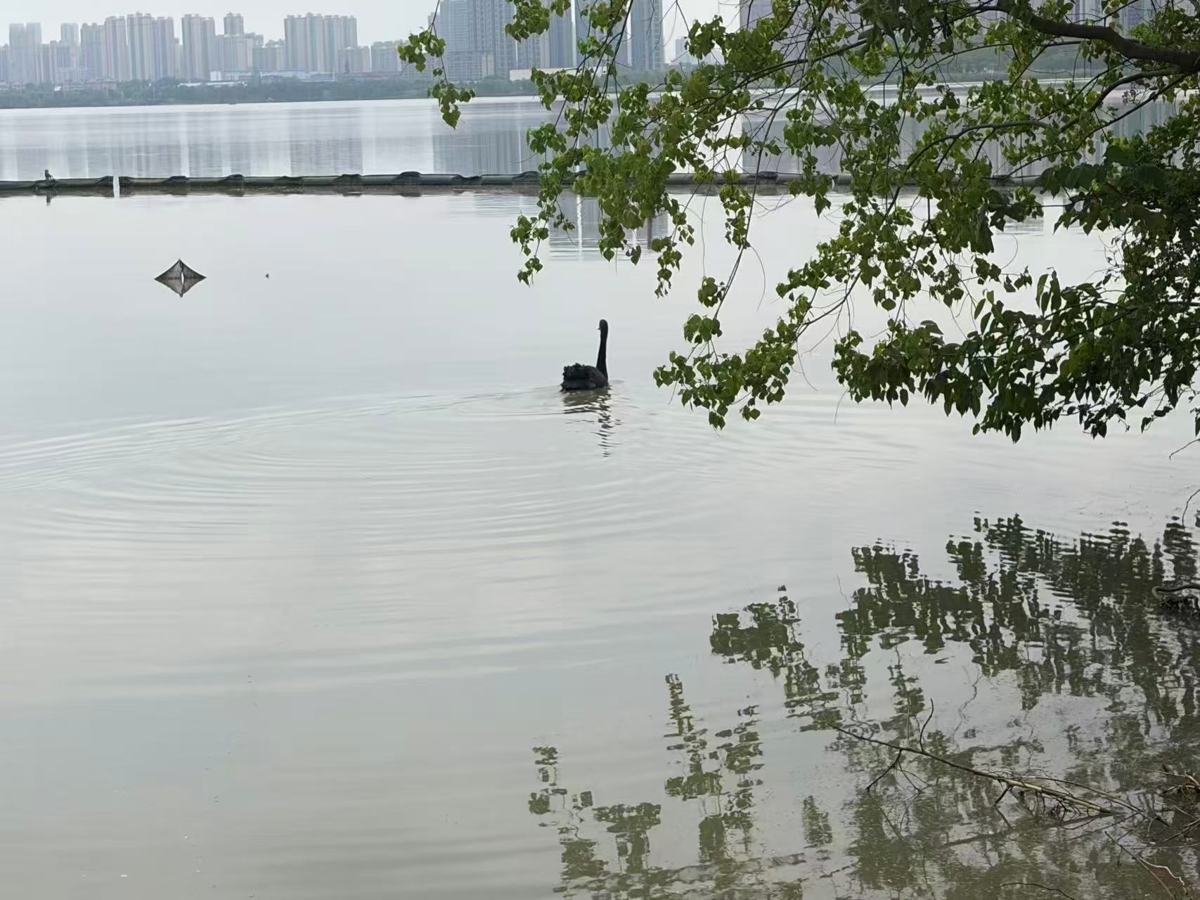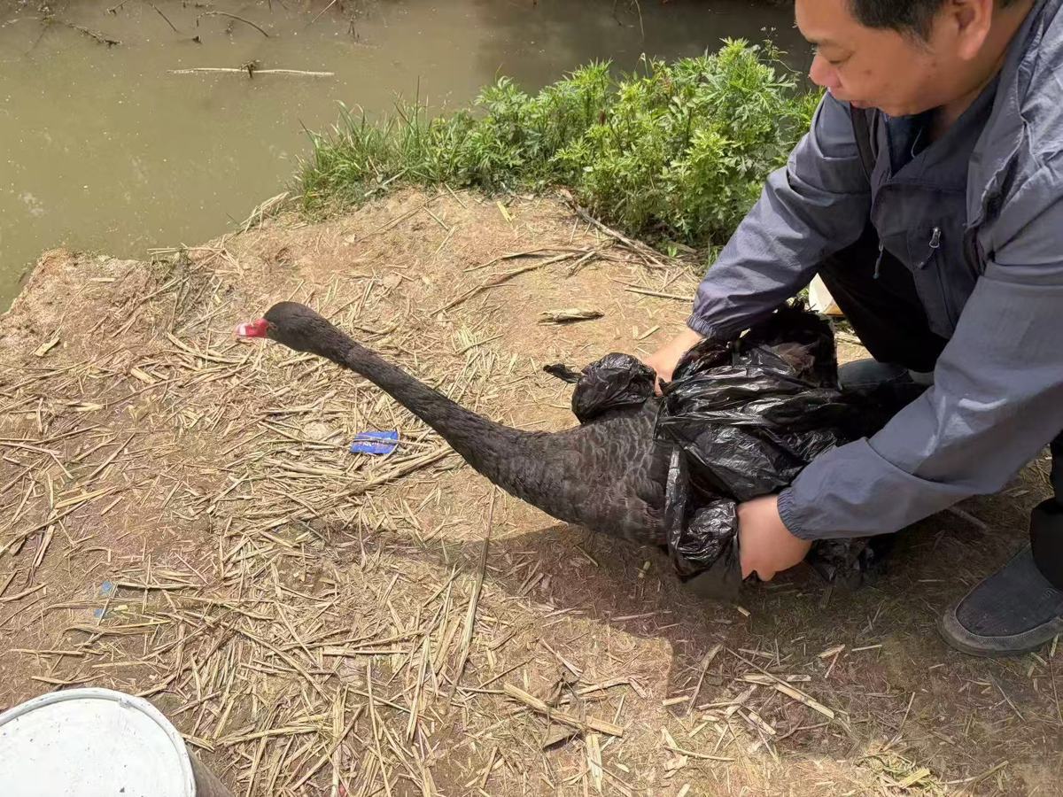 一只受伤的黑天鹅,在武汉市洪山区一大学林荫大道被热心市民发现后,洪山区城管执法局工作人员将其接回救治。4月24日,经过精心治疗后,黑天鹅身体状态逐步好转,成功恢复自主进食、自由活动能力,工作人员将它放生。